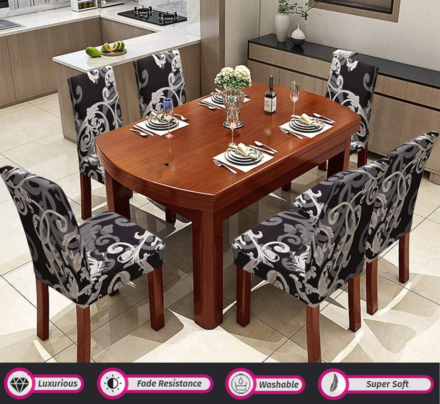 ✓ Premiumkvalitet: Tillverkad av slitstarkt spandexmaterial som anpassar sig till dina stolar och ger dem ett nytt liv.