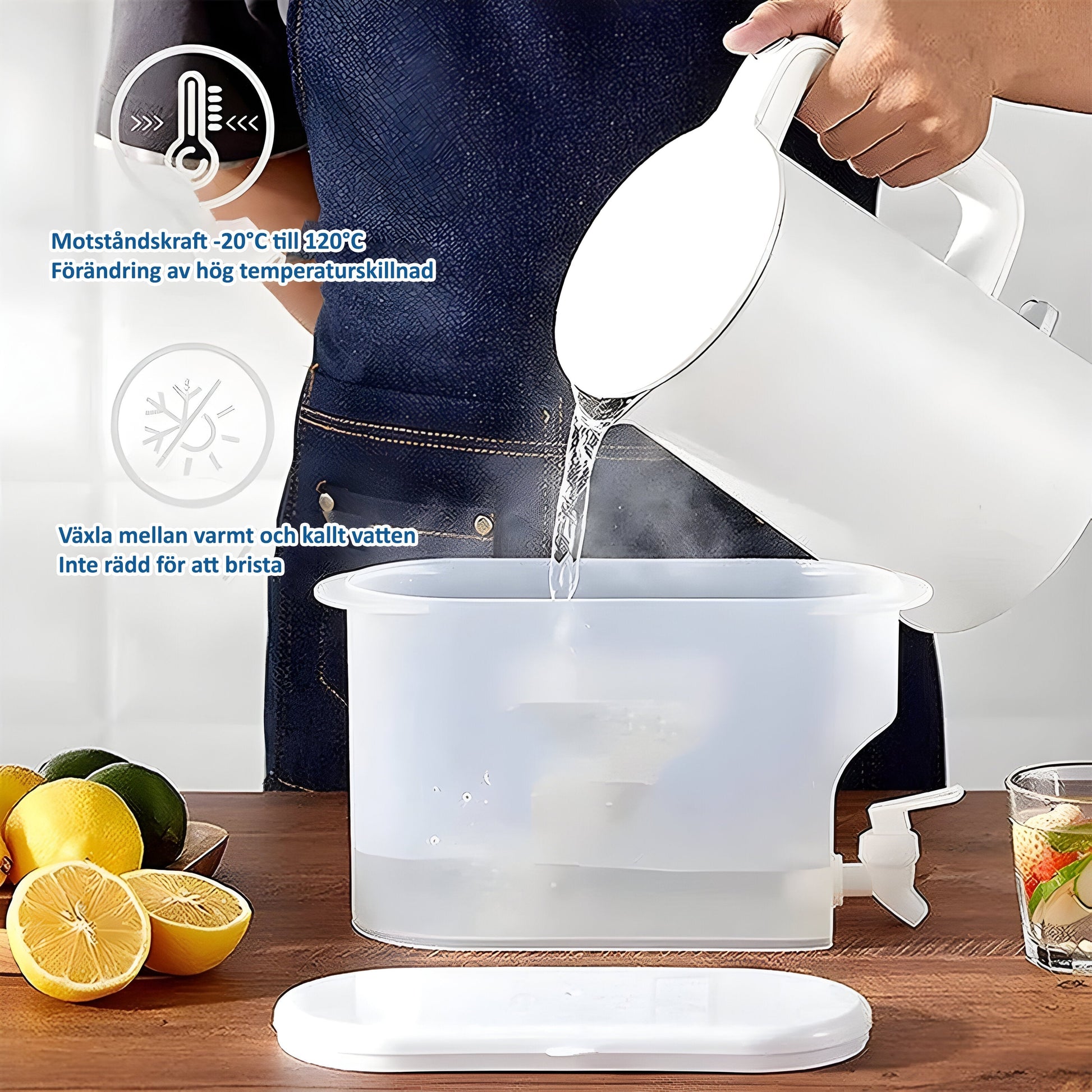 Varje dispenser rymmer 3,5 liter – perfekt för familjer och gäster.