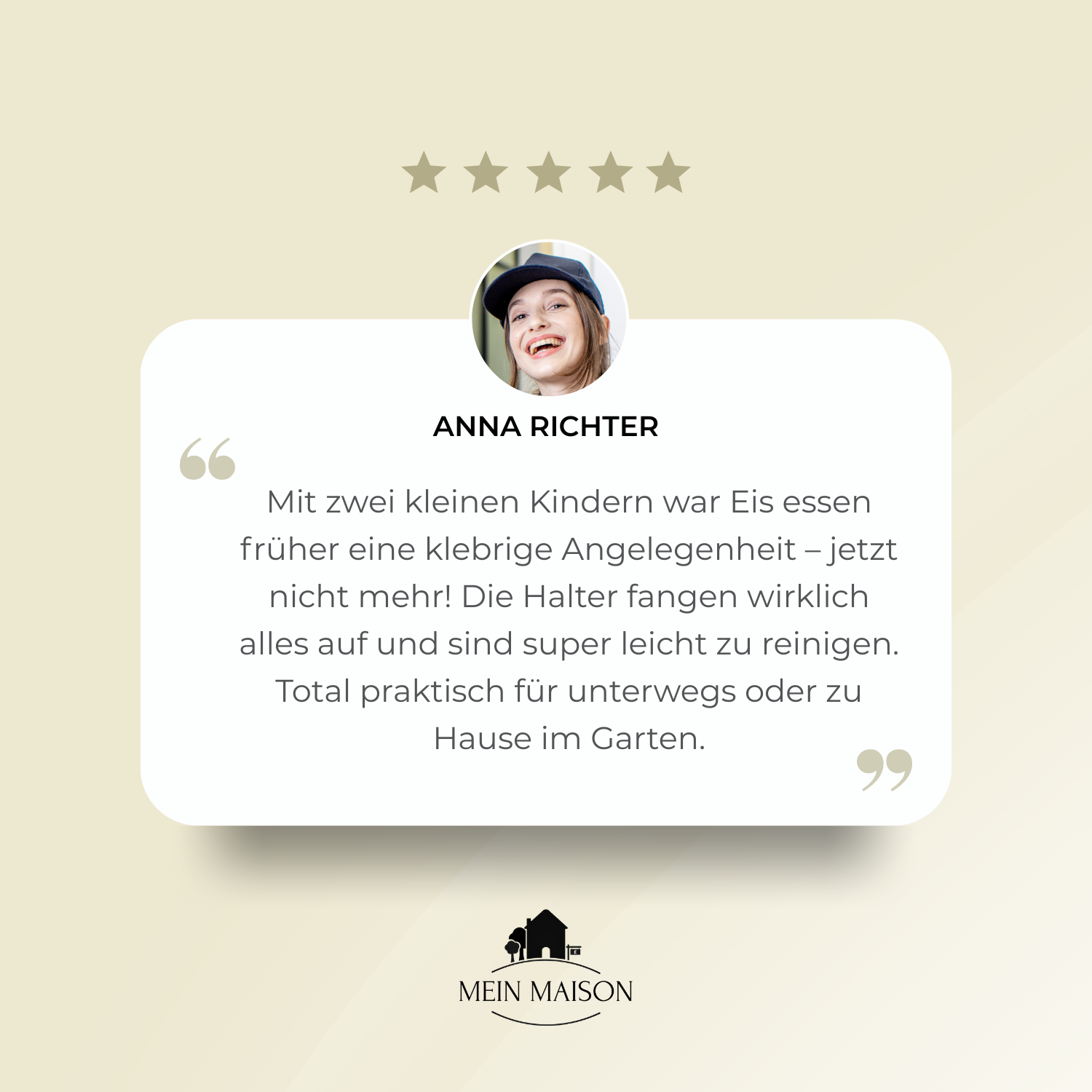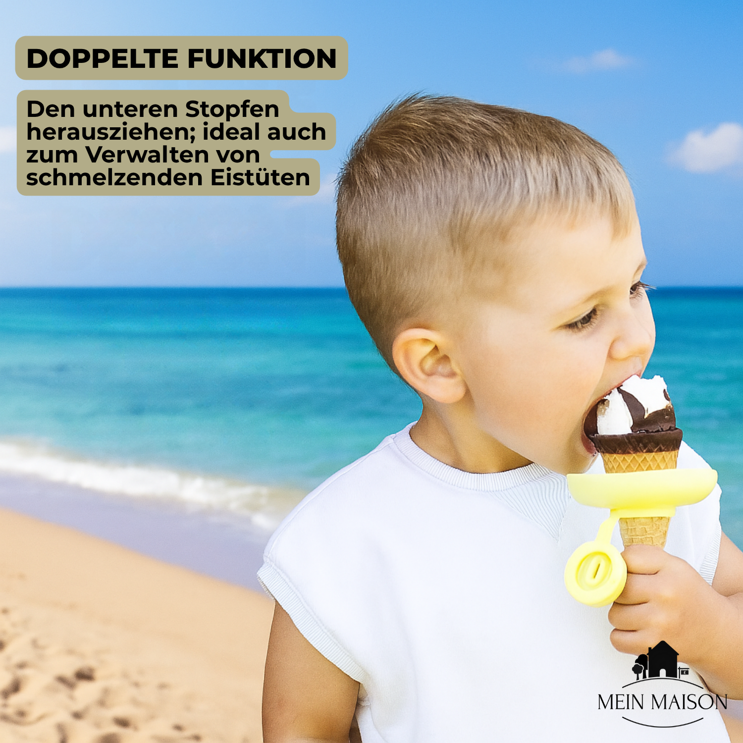DripStopper fångar varje smält dropp på ett tillförlitligt sätt – oavsett om det gäller glass på pinne eller våffelglass. Idealisk för barn, utflykter och sommarfester! Slut med stressen vid glassnjutning – nu slickas det, inte städas.