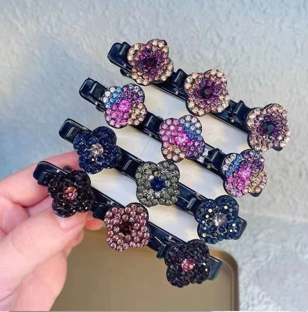 2 x GlimmTwist Sparkling Crystal Braided Hair Clips (slumpturval av färger)