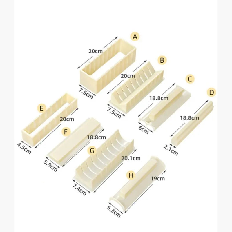 Vår Multifunktions-sushiform har tillverkats med precision och hållbarhet för att säkerställa lång livslängd. Tack vare den ergonomiska designen är den lätt att använda, vilket gör att du kan skapa kulinariska läckerheter med självförtroende.