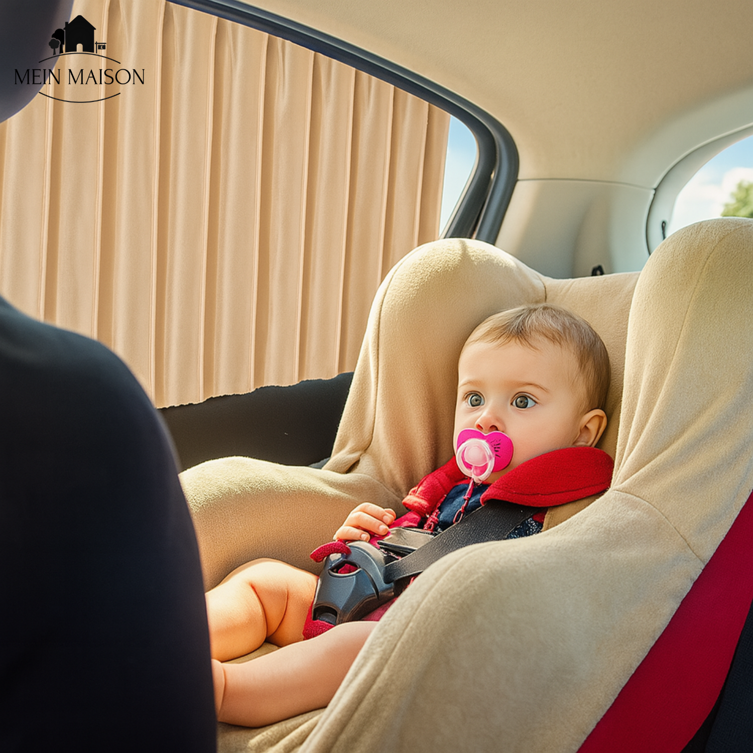 Bländar solen direkt på dina barn eller bländar när du kör? ShadeMate skyddar mot värme, ljus och nyfikna blickar – helt utan ansträngning. Enkelt att fästa och genast mer avkopplad på resan. Inga fler sömnlösa bilturer – för stora och små.