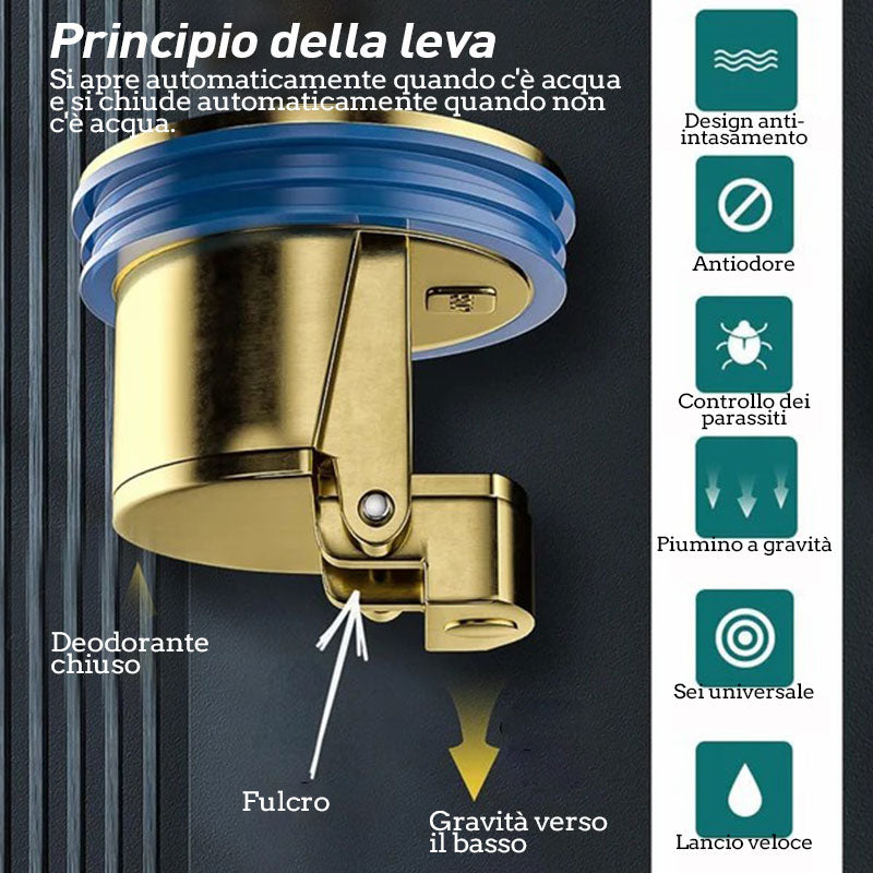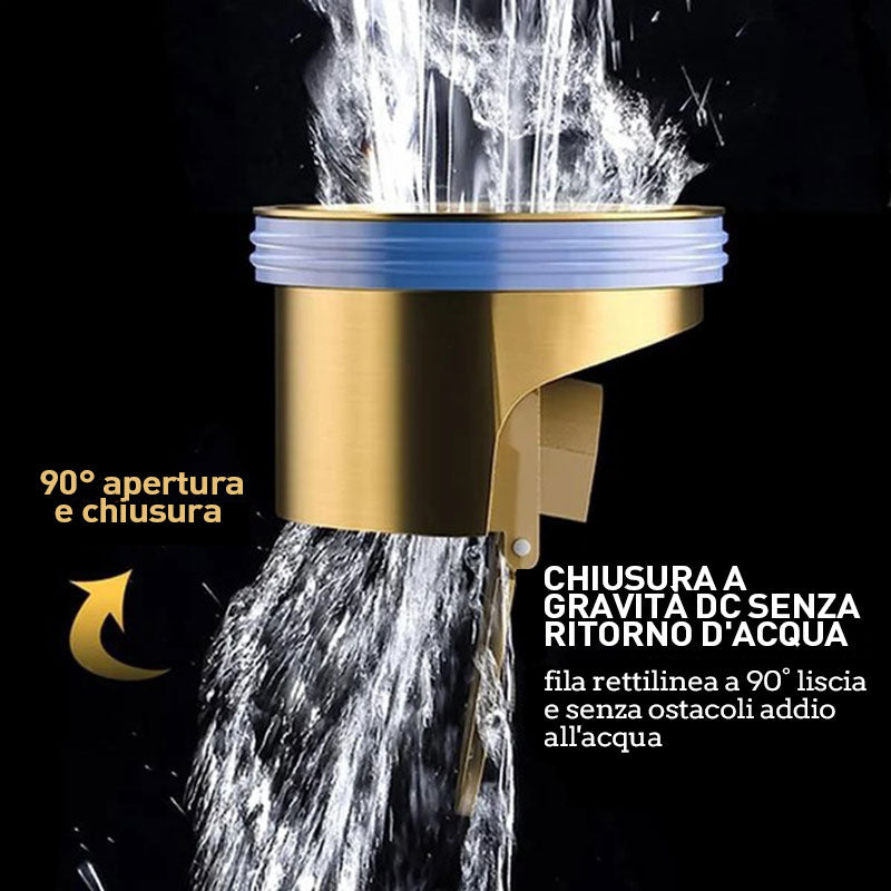 Tack vare den automatiska 90°-klaffen förblir avloppet stängt vid obruk – inga gaser, inga lukter.