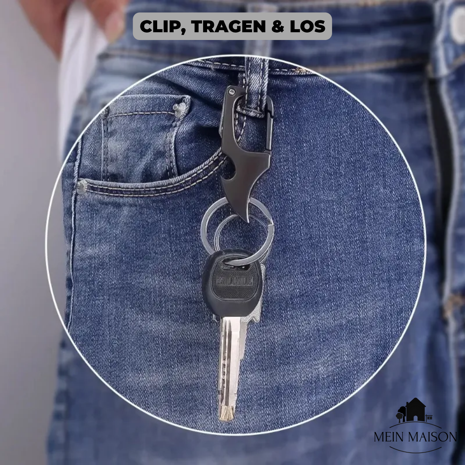 Oavsett om du campar, är på fest eller är på språng – med KeyBlade har du allt du behöver direkt på nyckelringen. En robust flasköppnare, en dold mini-kniv och en stilren design i ett kompakt metallhus. Starkt, praktiskt och alltid till hands.