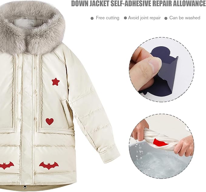 ✔ Snabb reparation utan sömnad - Reparera sprickor i jackan omedelbart med ett enkelt avdragbart och självhäftande lapp, ingen sömnad krävs. Kom snabbt ut igen!