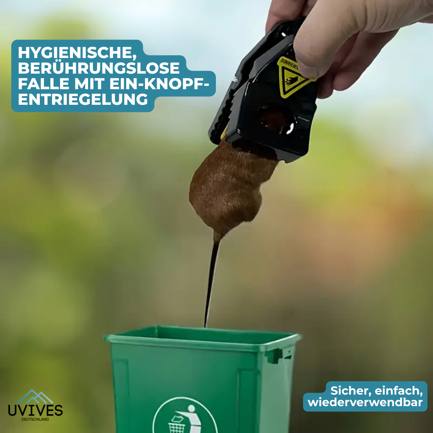 Med SnapGuard tar du striden mot råttor och möss – säkert, rent och helt utan gift! Den extremt känsliga dubbelfjädertekniken reagerar på varje rörelse och säkerställer omedelbar utlösning. Perfekt för bostäder, källare, garage eller kontor – där du vill agera effektivt men djur- och miljövänligt.