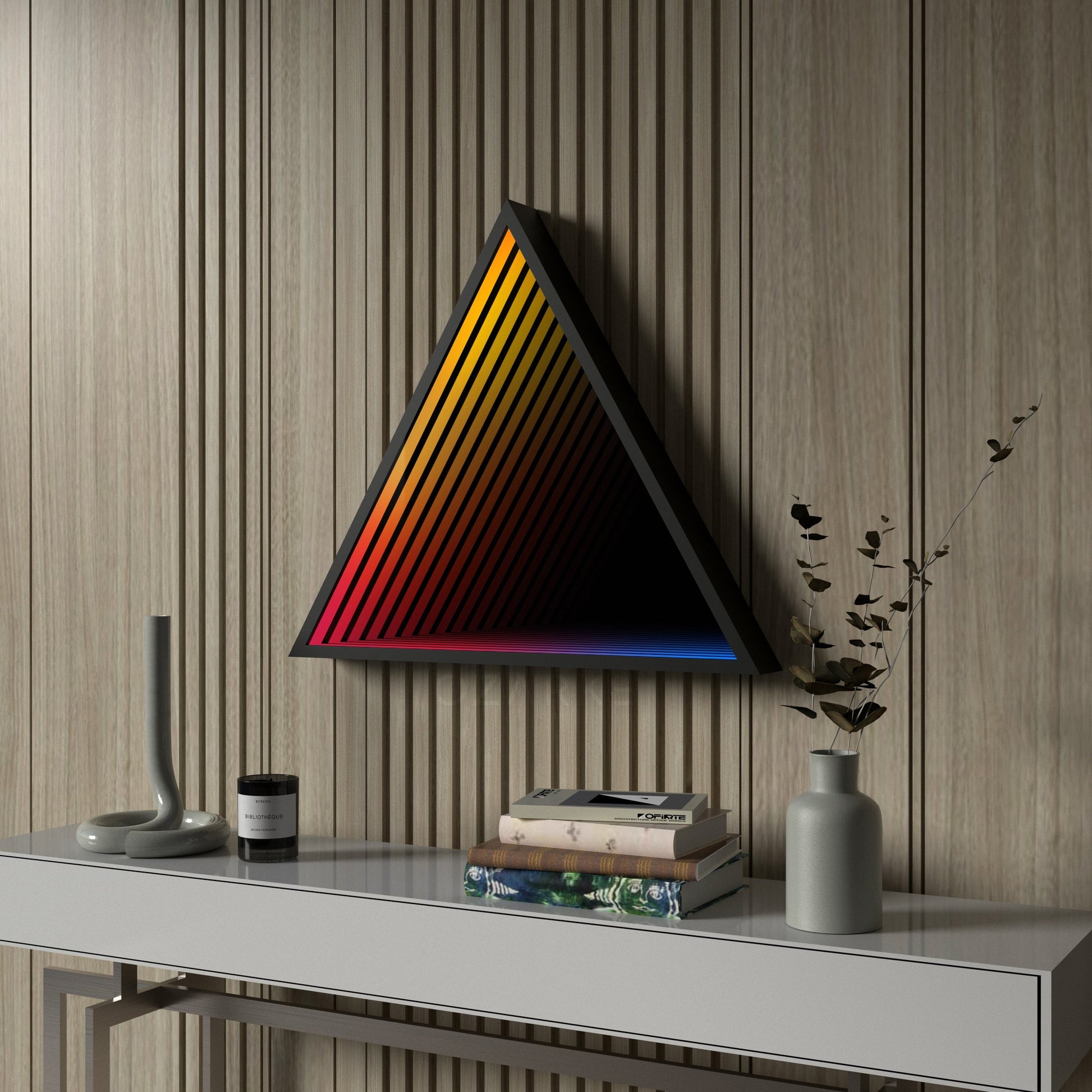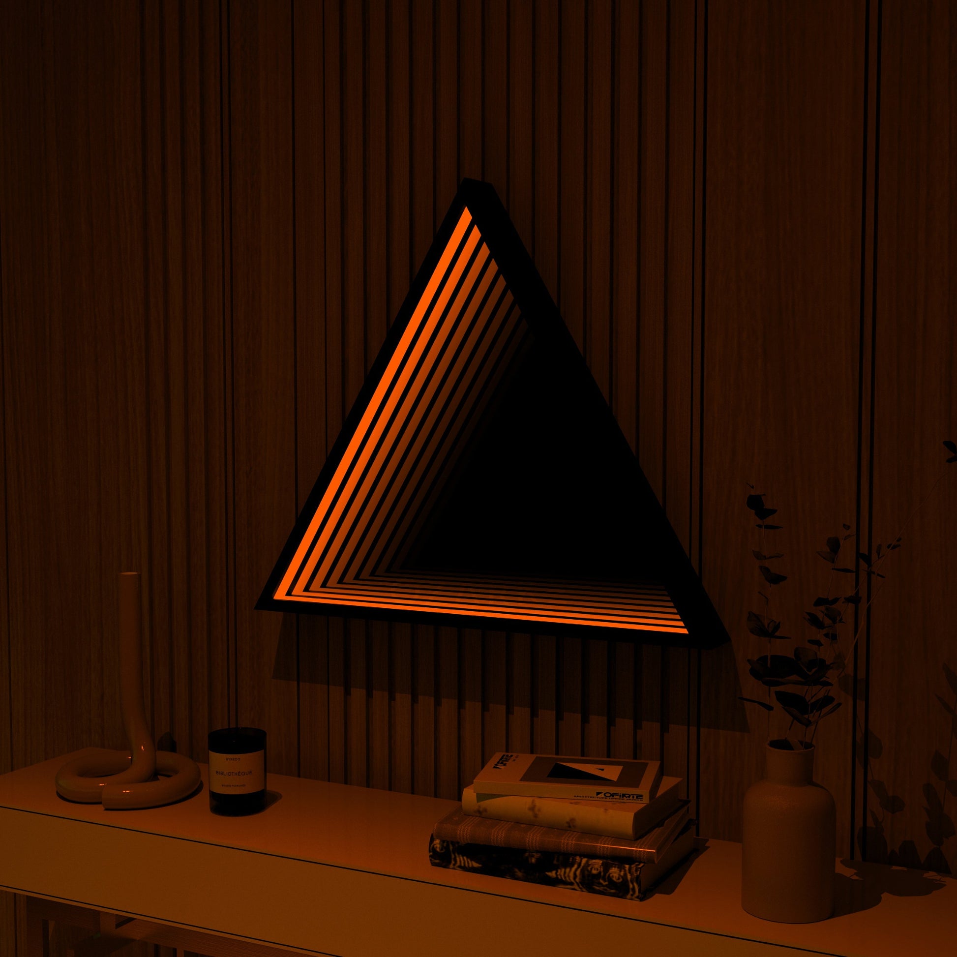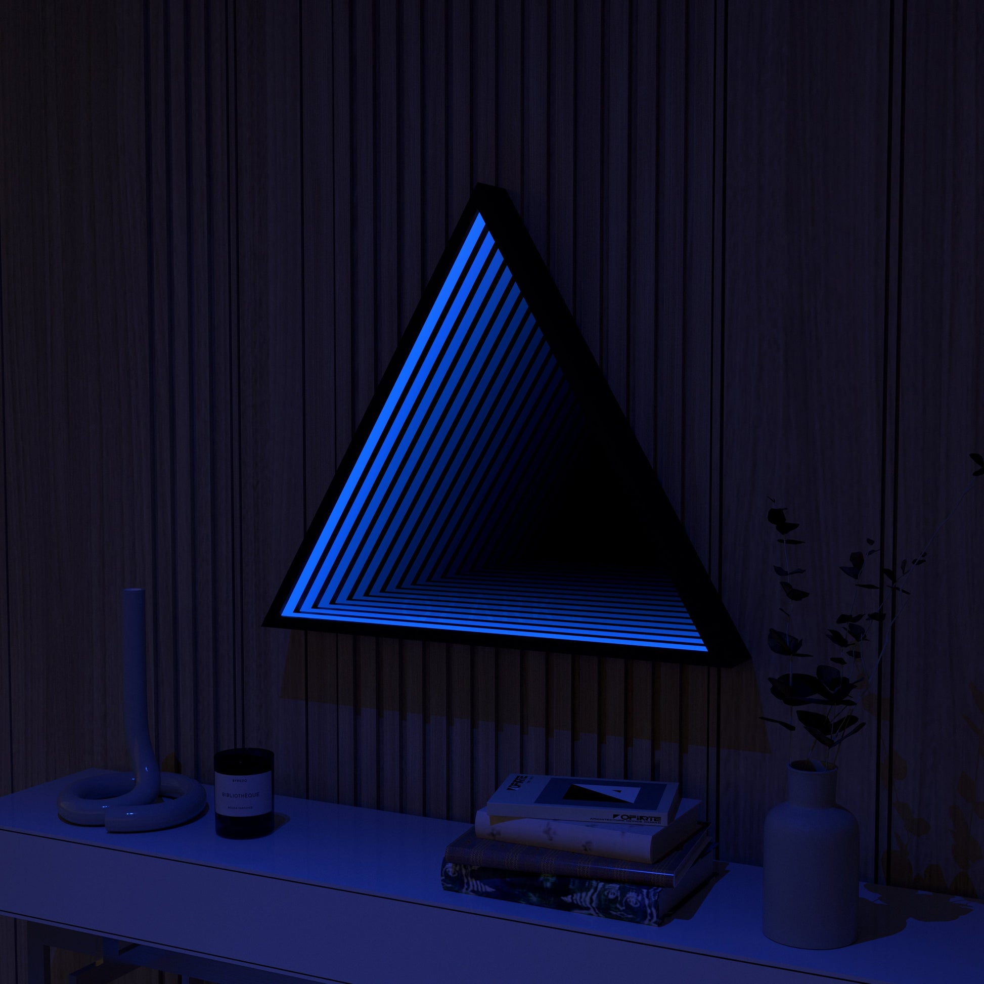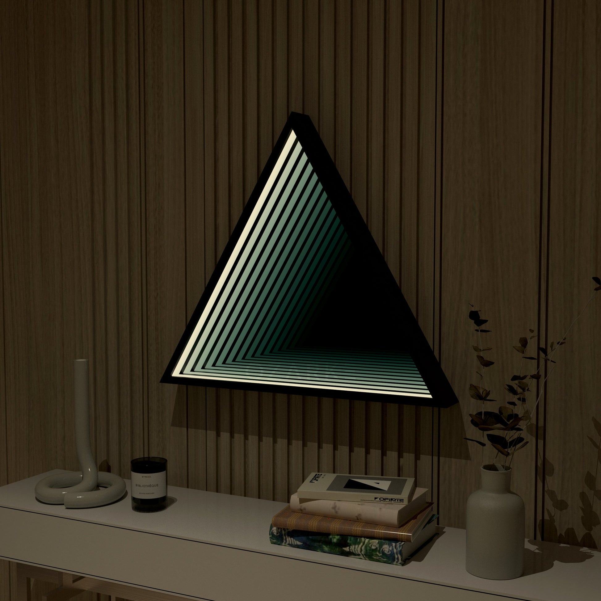 Upptäck den förtrollande attraktionskraften hos 3D Triangel Infinity Spegel Vägglampa, en fantastiskt fusion av konst och belysning. Detta moderna mästerverk skapar en illusion av oändligt djup och visuell förtrollning, vilket förvandlar ditt utrymme till ett unikt och oförglömligt dekorationsstycke.