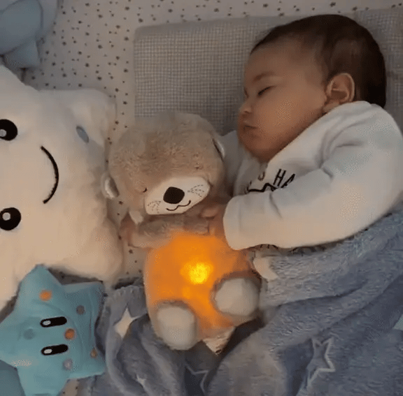 Ge ditt lilla barn en gåva av fridfull sömn med denna mjuka, andningsvänliga plysch. Designad för att efterlikna mjuka andningsrörelser, ger den en känsla av säkerhet medan lugnande musik och mjuka ljus skapar den perfekta sänggåendemiljön. Lätt och bärbar, den är den perfekta kramvännen för både tupplurar och nattvila.