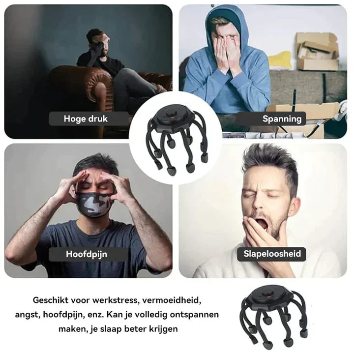 Tänk dig att du kan bli av med all stress och spänning från dagen på bara några minuter. Med vår avkopplande huvudmassagerare är detta nu möjligt! Utvecklad för att ge dig en djupgående avslappning, använder denna enhet en mjuk vibration för att lösa upp spänningar och skämma bort din hårbotten – precis vad du behöver efter en lång arbetsdag. Det är det ideala verktyget för alla som vill ta en paus.