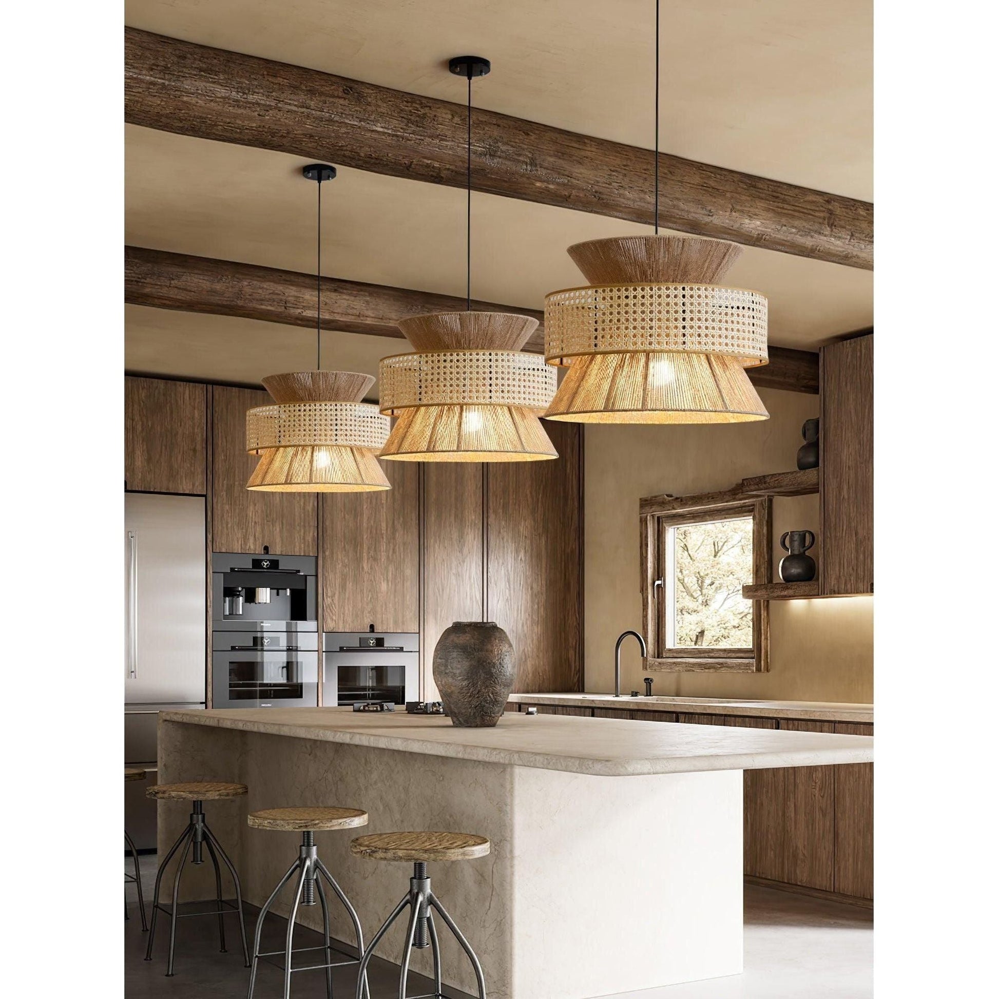 BambooLuxe Light är mer än bara en lampa – den är ett konstverk som ger din plats elegans och värme. Tillverkad av högkvalitativ bambu och rotting, kombinerar den italiensk design med naturlig skönhet. Denna taklampa är perfekt för alla som vill ge sitt rum en touch av stil och klass utan att kompromissa med funktionaliteten.