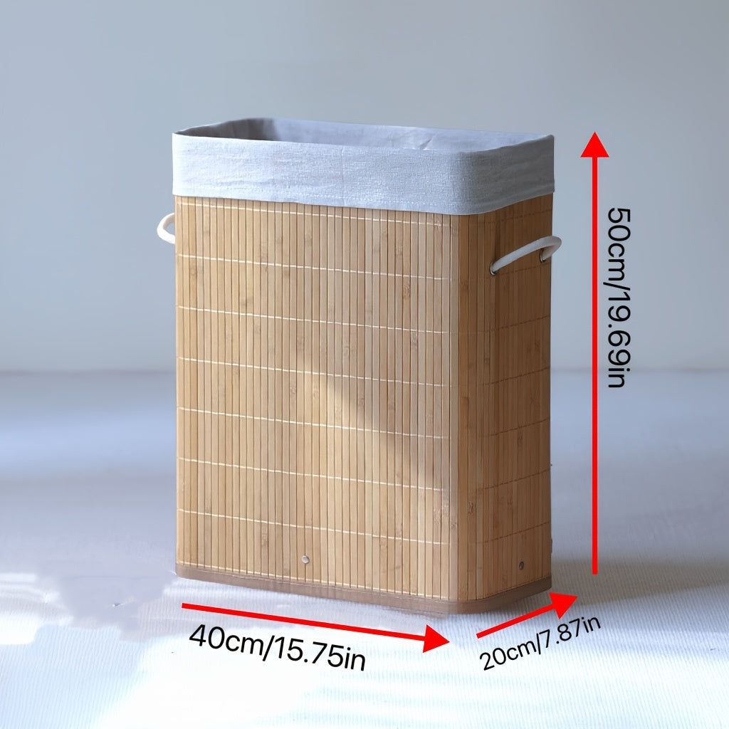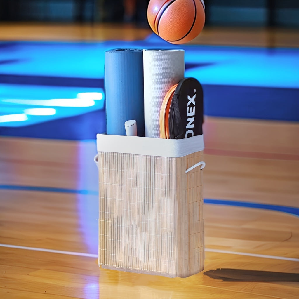 Denna förvaringskorg i bambu utan lock erbjuder en praktisk och stilfull lösning för att lagra olika artiklar som sportutrustning, kläder eller köksaccessoarer. Materialet är luktfritt och mögelresistent, vilket gör det till ett utmärkt val för både badrummet och vardagsrummet. Dess smala form gör den idealisk för trånga utrymmen, medan den robusta konstruktionen säkerställer långvarig användning.