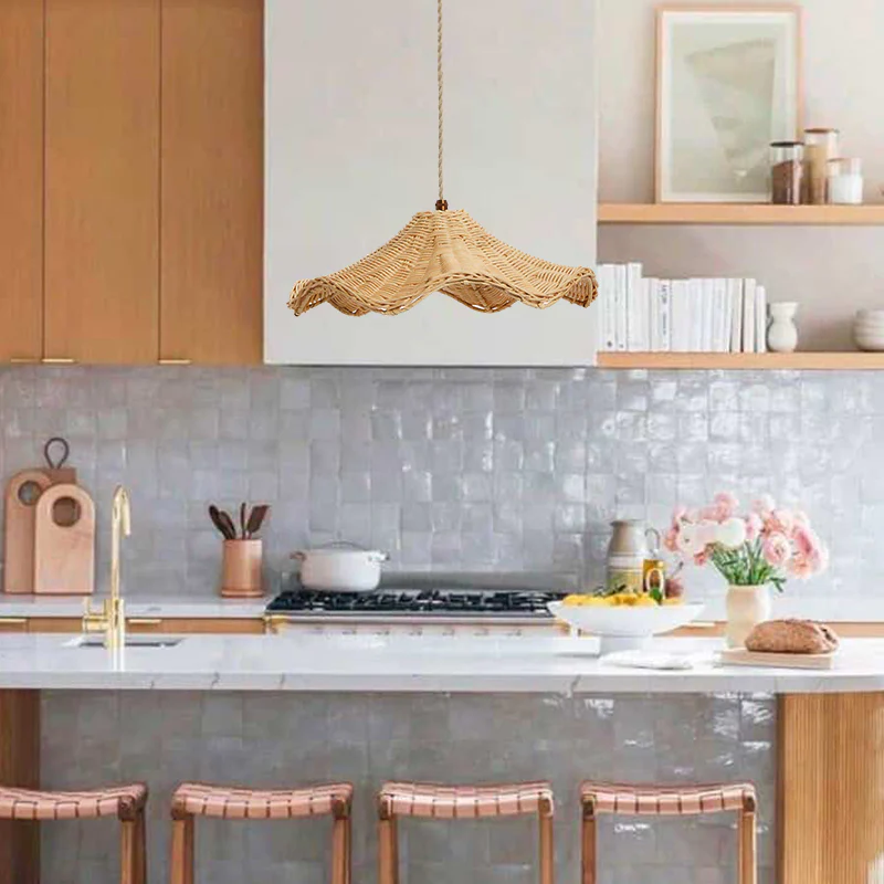 Boho Vävda Rieten Bondgård Hänglampa. Tillsätt en touch av boho-stil och rustik charm till ditt hem med vår Boho Vävda Rieten Bondgård Hänglampa. Handvävd av hållbart rotting, erbjuder denna unika lampa ett varmt och välkomnande utseende som är perfekt för varje rum.
