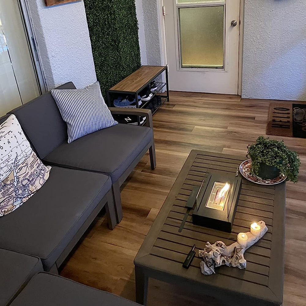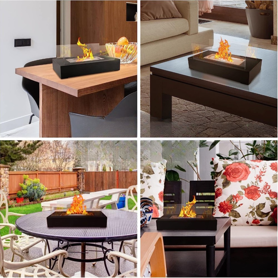 Ta med mysig värme till din trädgård eller uteplats med denna bärbara bordstabletteldstadion. Den har en rektangulär metalldesign och är perfekt för att skapa en avslappnande atmosfär vid varje utomhussammankomst. Med enkel uppsättning och ingen tändare behövs, kan du njuta av verkliga lågor på ett säkert och enkelt sätt.
