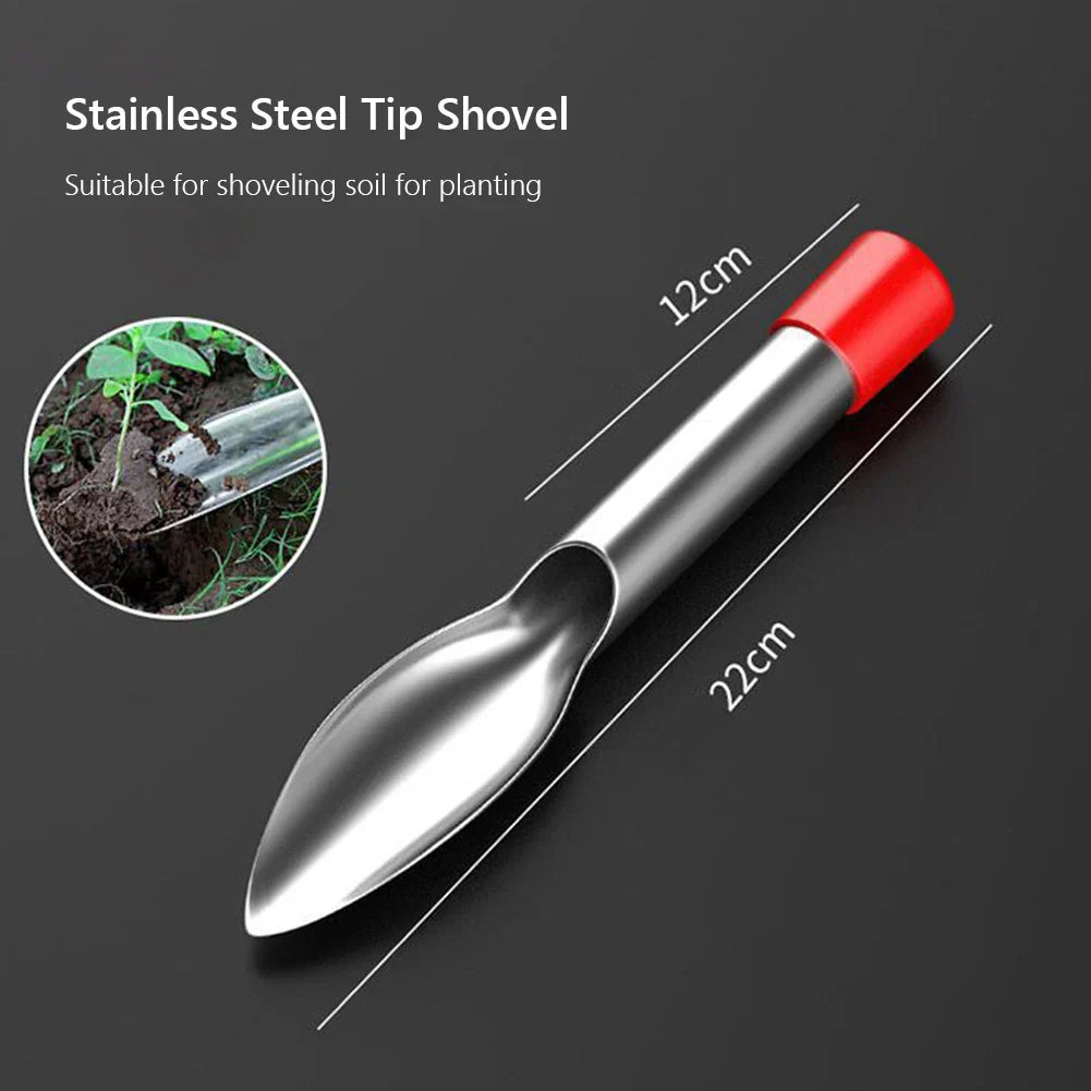 📌 Dubbelbladig precision spade: Den lilla transplantationsspaden med dubbelblad tränger lätt ner i jorden och möjliggör exakt plantering och borttagning av ogräs.