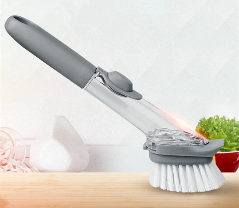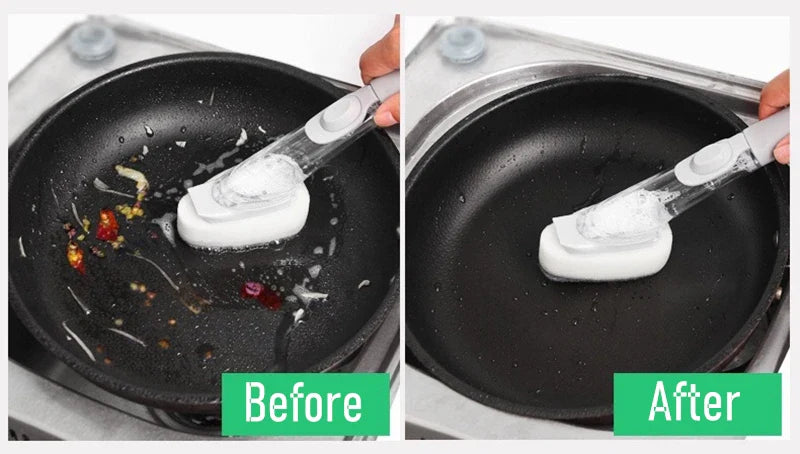 Carvallo 2-i-1 Diskborste med tvålpump & utbytbara huvuden | Långt handtag & skrapa | För kastruller, stekpannor & tallrikar