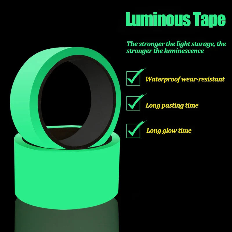 ✨ Lyser i mörkret – Tejpen laddas av solljus eller artificiella ljuskällor och lyser sedan i flera timmar – helt utan elektricitet.