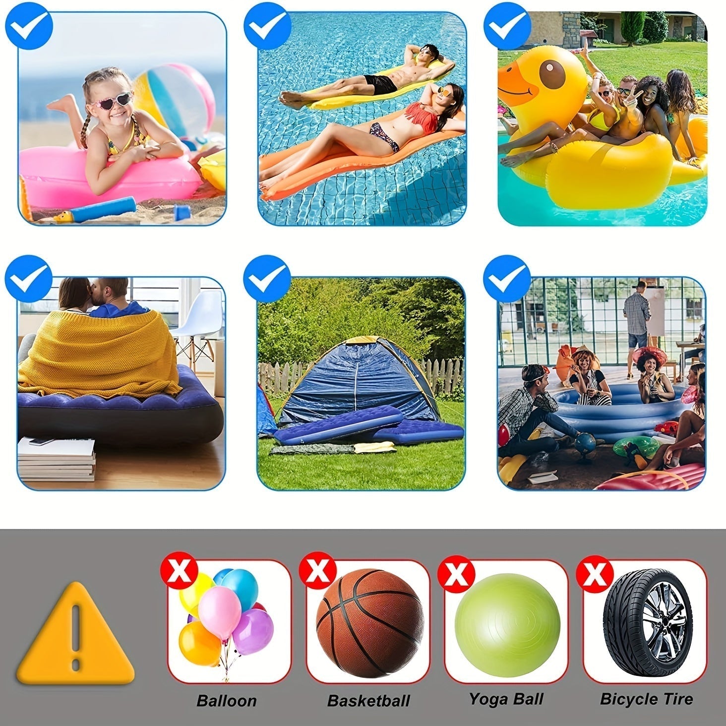 Användningsområde: Luftmadrasser, uppblåsbara kuddar, pool-floaters, campingutrustning