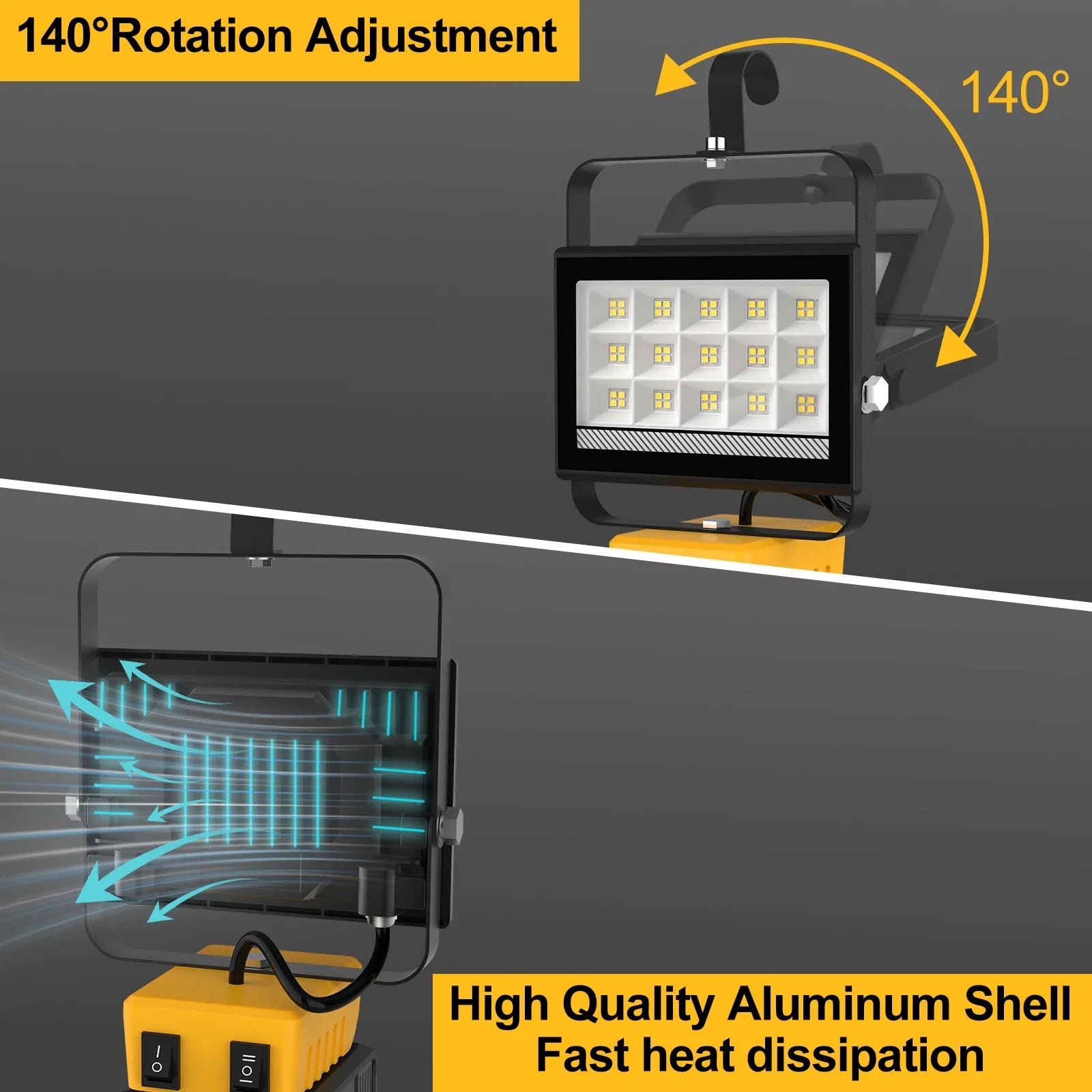 Carvallo arbetslampa PowerCraft Pro 60W | 6000LM | För DeWalt/Makita/Milwaukee batterier | Bärbar & Uppladdningsbar | Camping & Verkstad