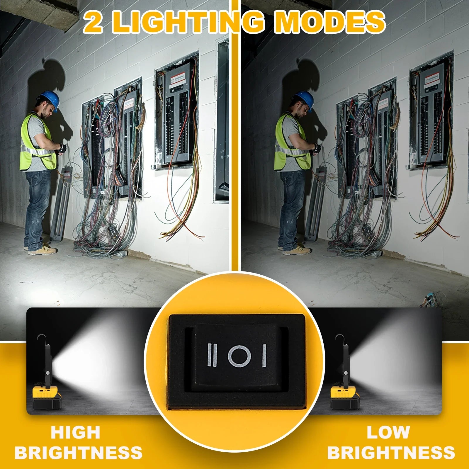 ✨ Två ljusstyrkenivåer: Välj 6000LM för maximal ljusstyrka eller 2000LM för energibesparande arbete vid längre insatser.