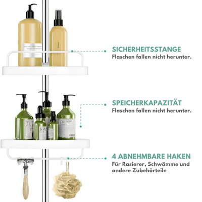 ✔ Maximal funktionalitet: Med Carvallo har du alla dina duschprodukter lättillgängliga på ett ställe och alltid inom räckhåll. Inga fler sökningar efter schampo eller tvål – allt är välorganiserat.