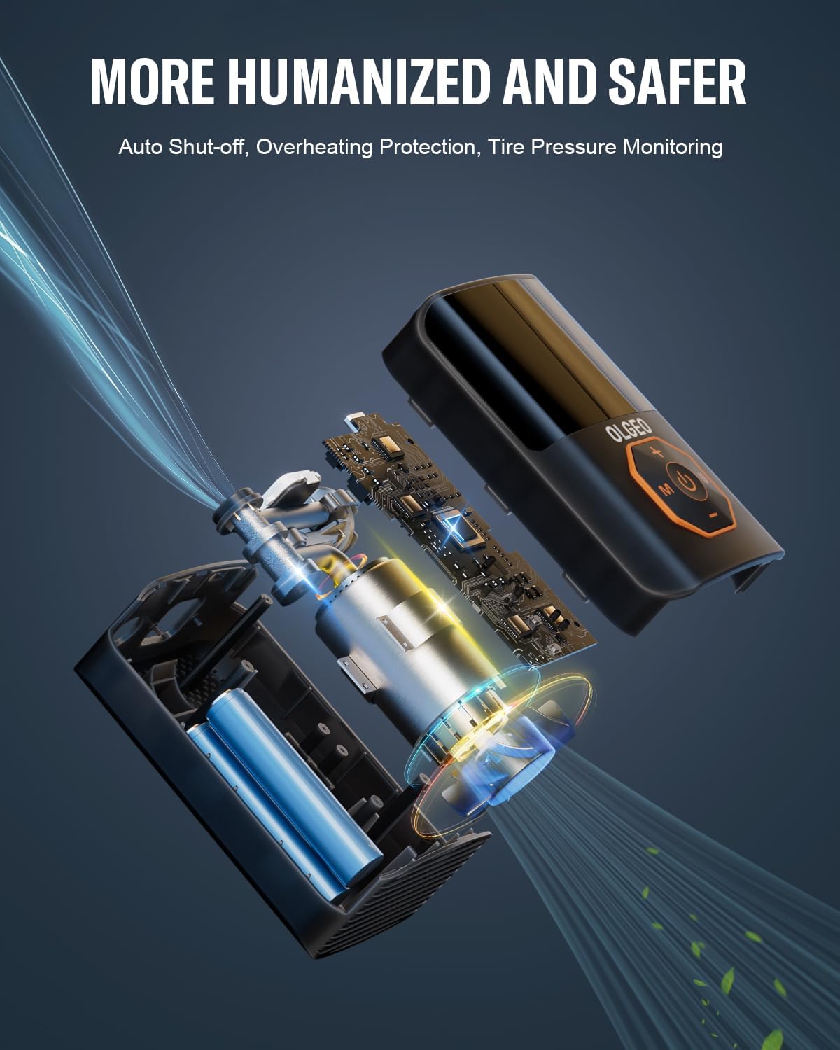 📌 Kraftfull 160 PSI tryckkraft - Snabb upppumpning på några minuter - perfekt vid nödsituationer eller rutininspektioner.