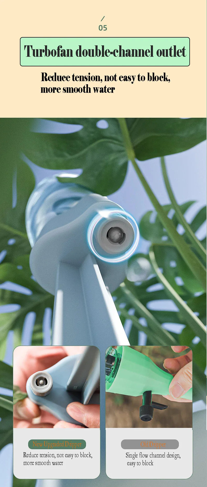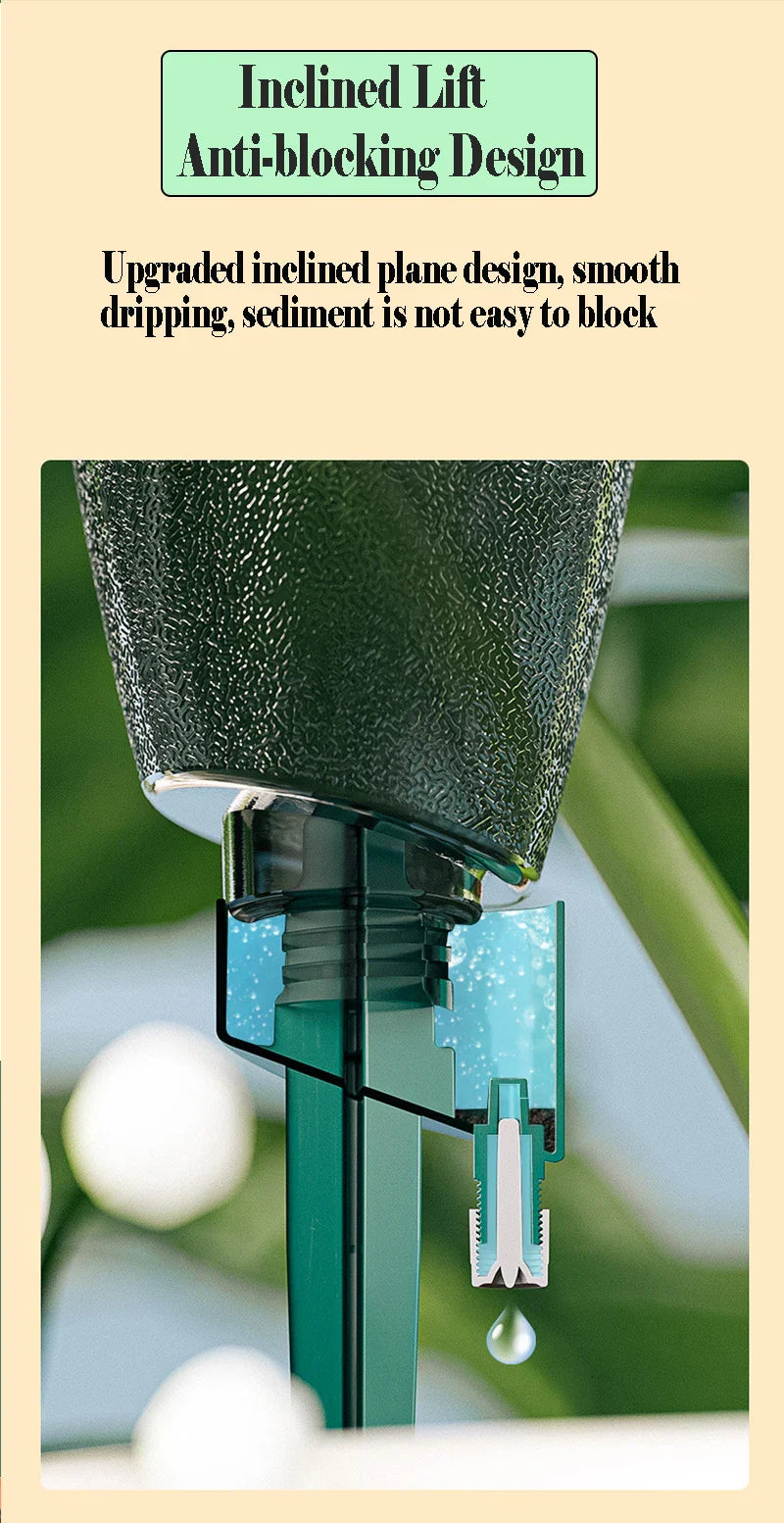 ✨ Anti-tilltäppningsdesign & skonsam mot rötterna – Den lutande utloppsformen förhindrar tilltäppningar av sediment och säkerställer jämnt droppande – utan att skada rötterna.