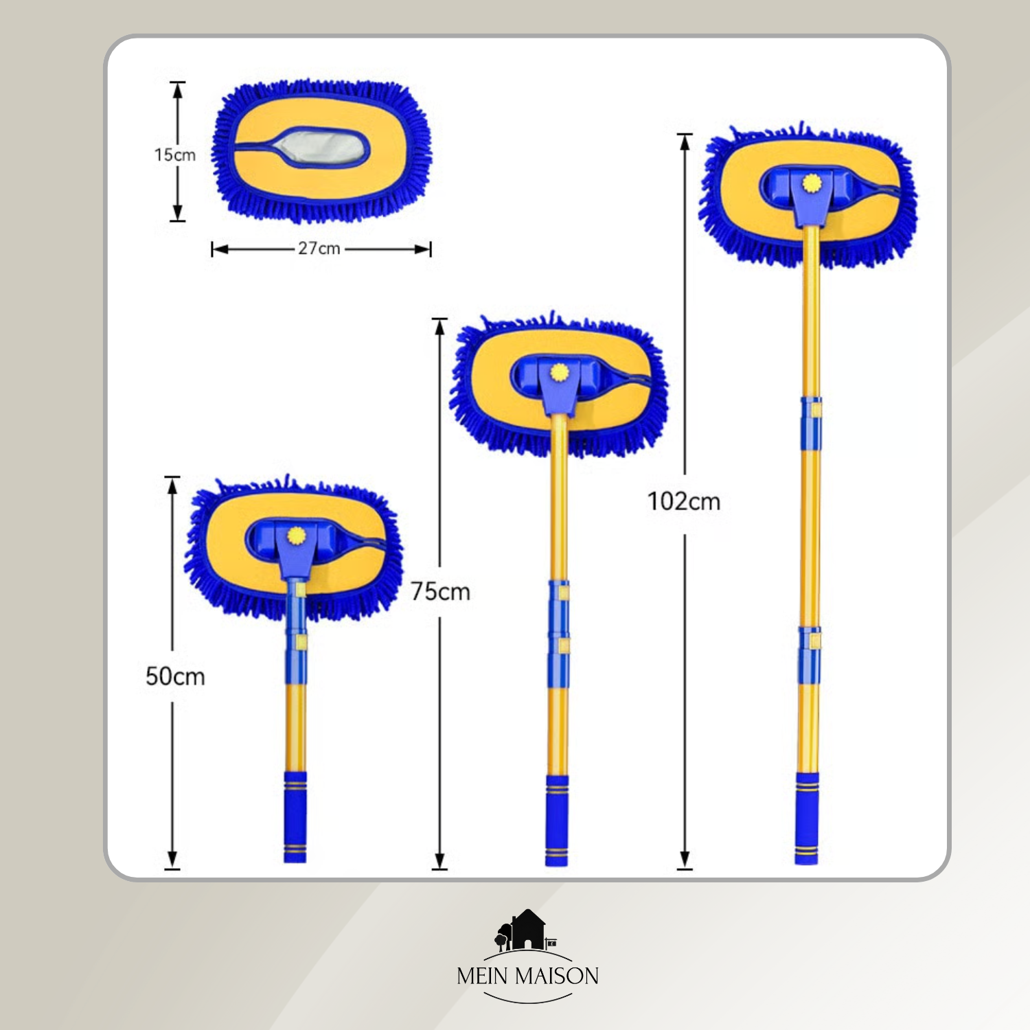 ✔️ Teleskopskaft över 1 m – Ryggen förblir rak: Rengör höga ytor som bilens tak & vindruta utan att klättra eller vrida dig.