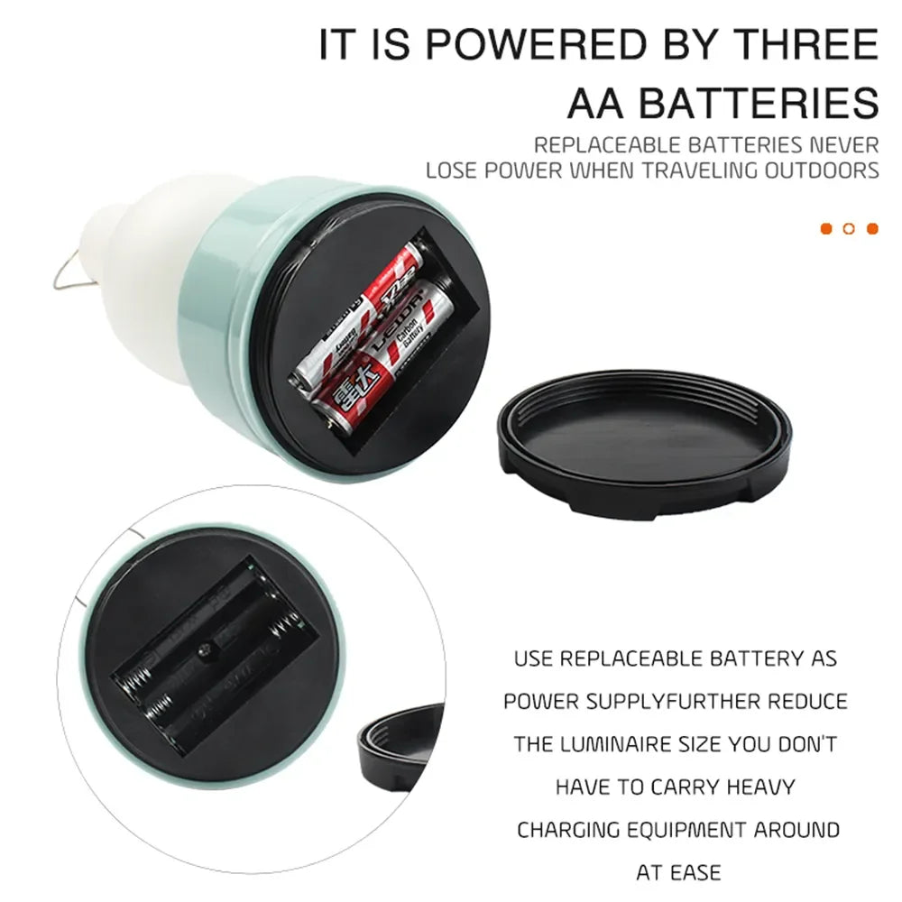 Carvallo CampLight | Bärbar utomhuslampa | 2 ljuslägen & vattentålig | För tält, vandring & trädgård – Grön/Rosa