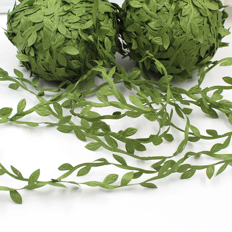 Carvallo Dekoband med konstblad | Grönt bladband | För DIY, bröllop, borddekoration & presentförpackning