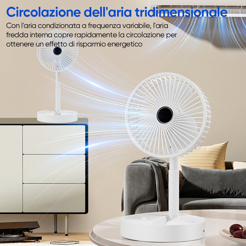Kyl dig själv – oavsett var du är! Med Carvallo får du den perfekta följeslagaren för heta dagar: hopfällbar, höjdjusterbar, tyst och stark – och passar i varje ryggsäck! Oavsett om du är ute och camperar, på kontoret eller hemma – denna bordsvänfläkt ger dig timmar av uppfriskning med endast en laddning.