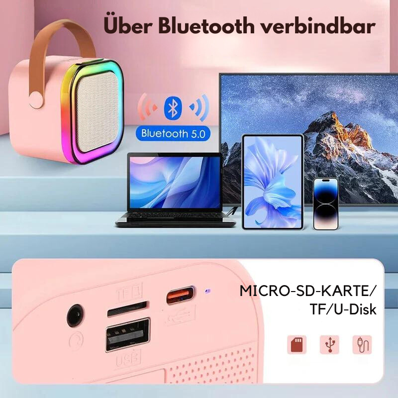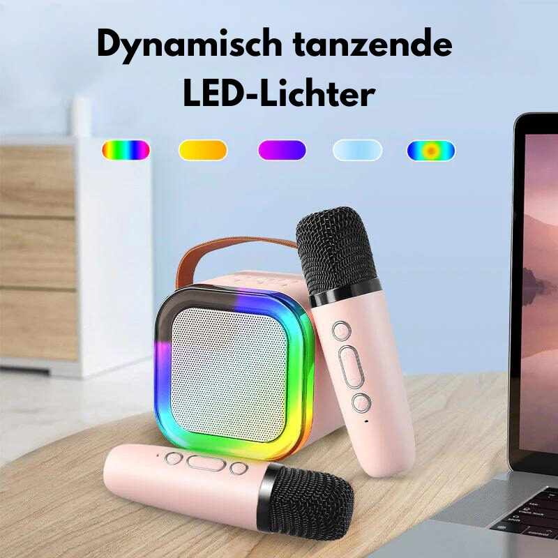 ✔️ Ljus, ljud & stämning i ett: LED-lampor, ljudeffekter & mikrofon – hela karaokeupplevelsen i kompakt format.