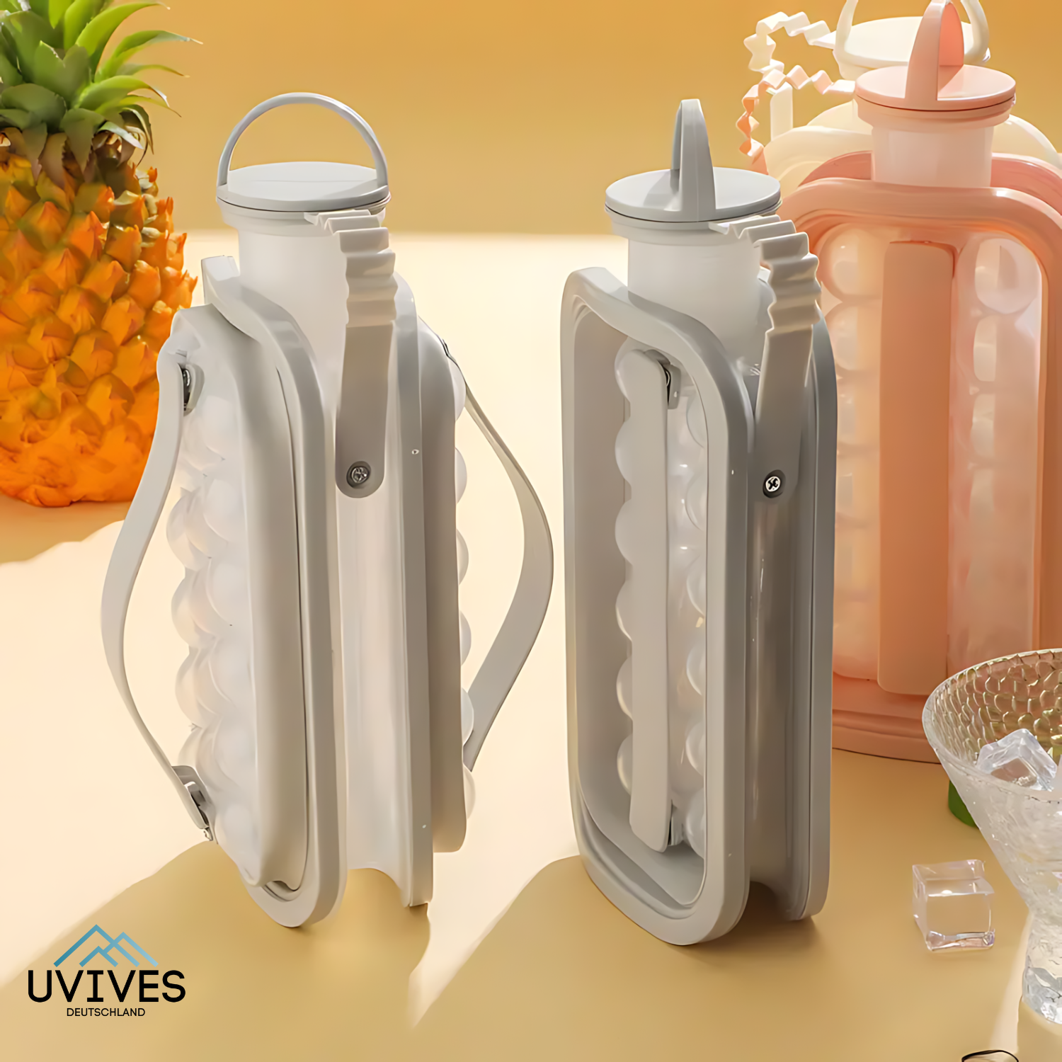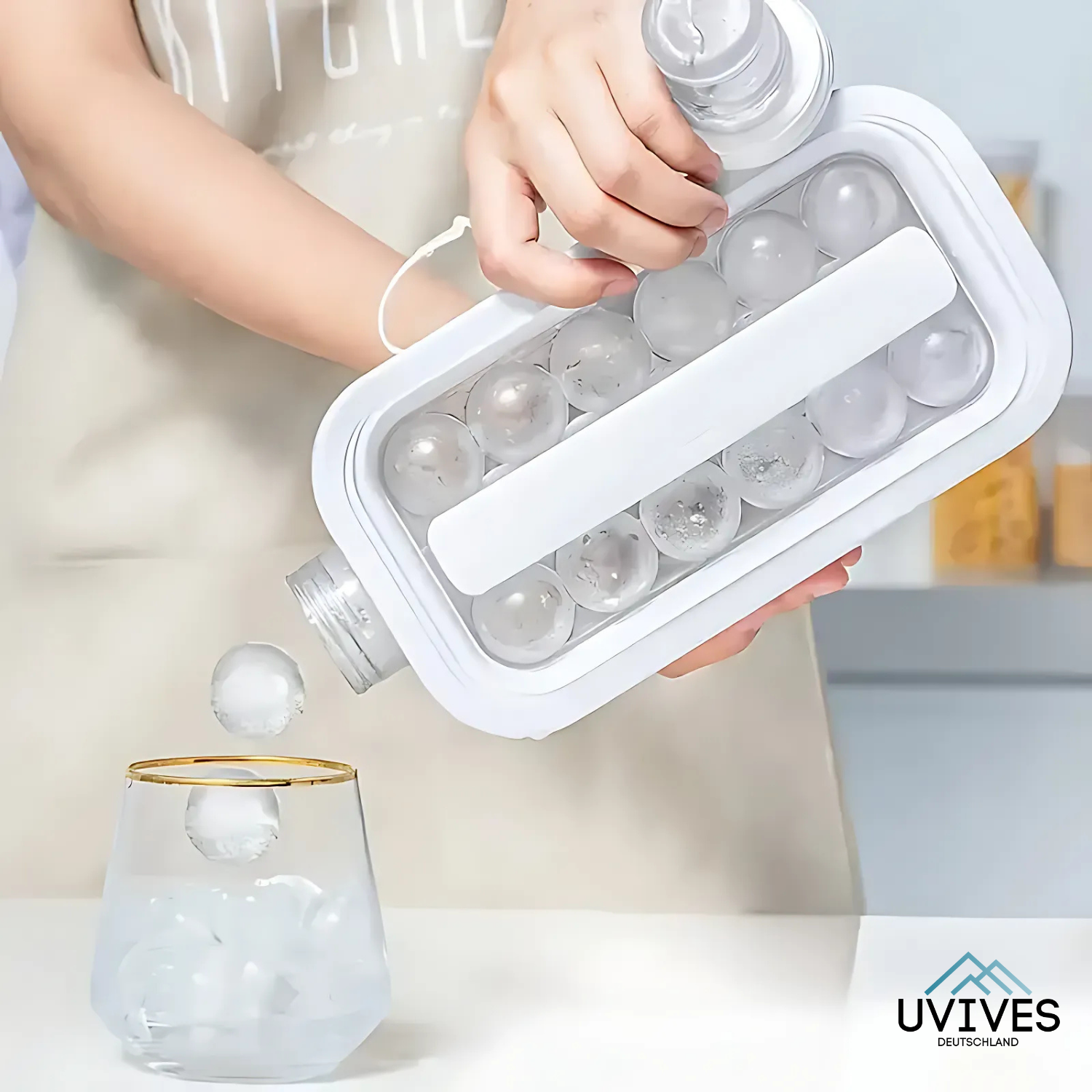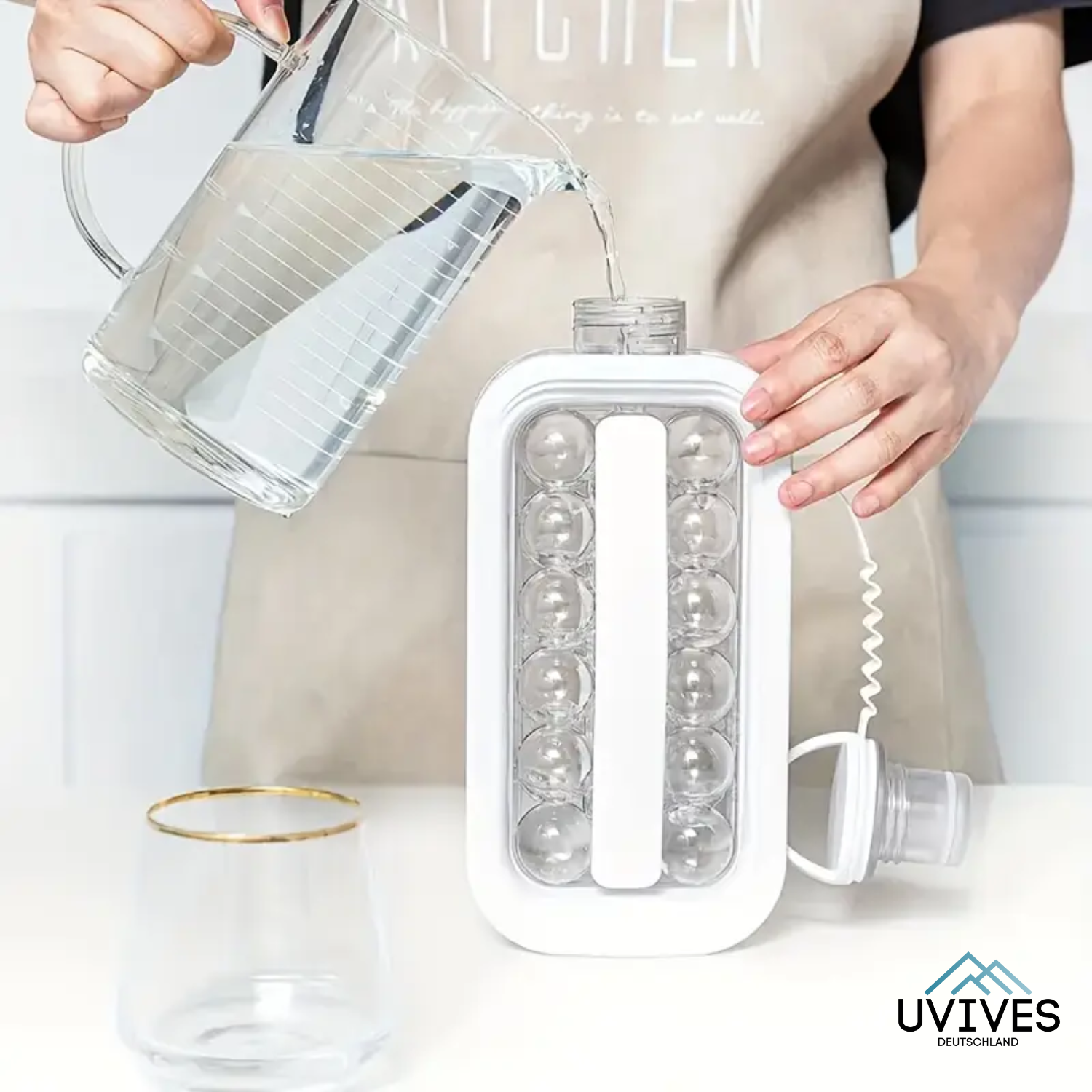 Med Carvallo skapar du stiliga iskullar av varje vätska – direkt i praktisk 2-i-1-design! Oavsett om det är som isform eller vattenflaska: Denna gadget ger friskhet, elegans och nöje i varje glas – året runt.