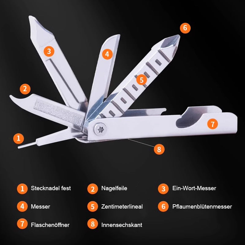 ✔️ 7 verktyg i ett: Öppna, skruva, mäta, klippa – allt ingår.