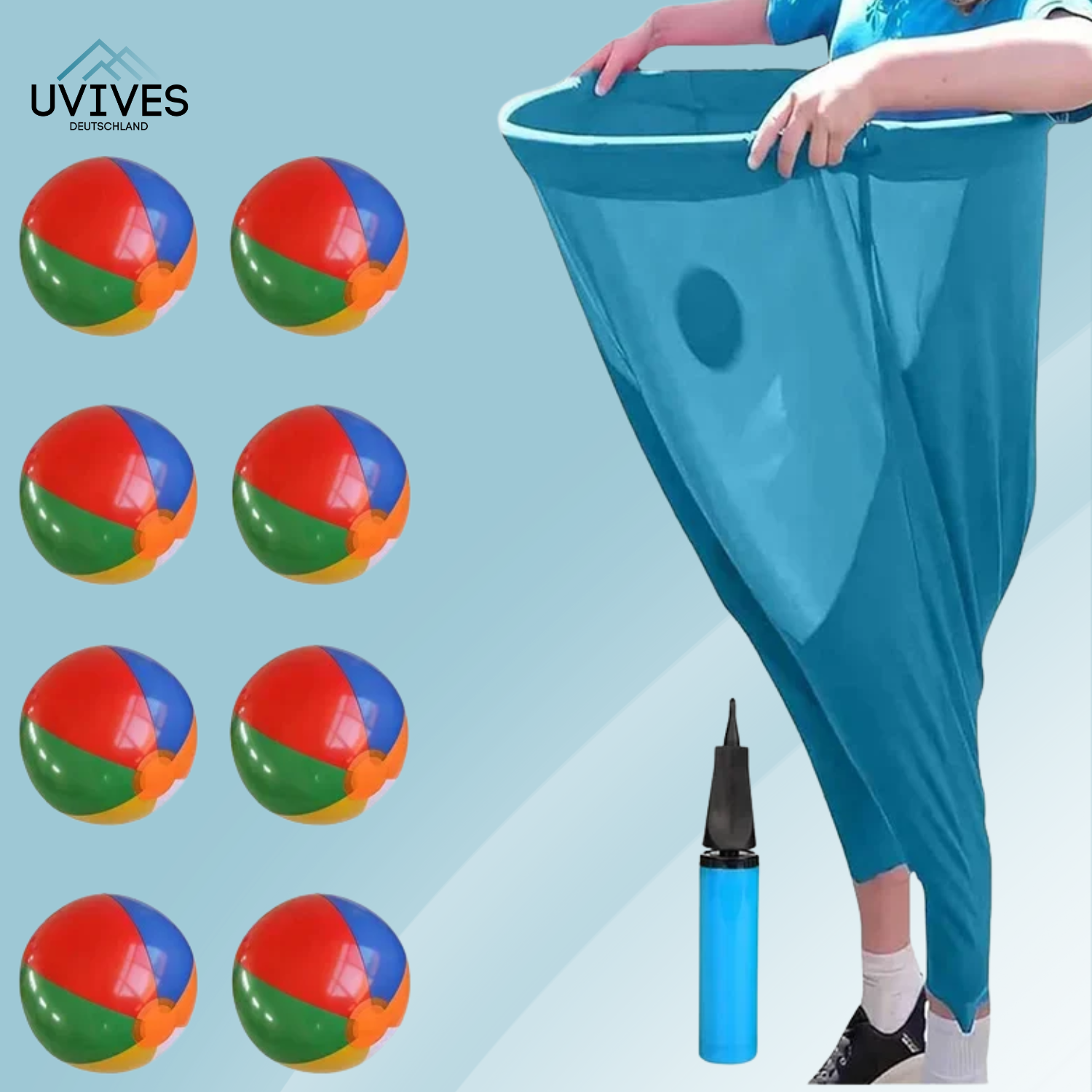 1x mormors underklädesmål, 8x uppblåsbara bollar, 1x luftpump – allt ingår!