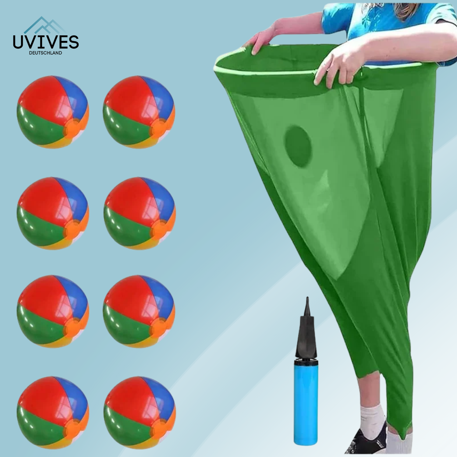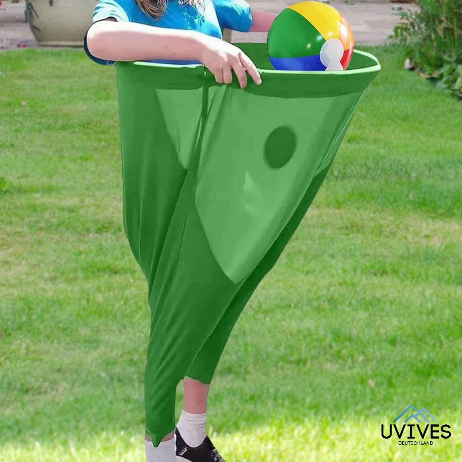Detta spel får hela familjen att skratta! Carvallo kombinerar mormors underklädesdesign med kastspels-action. Målet är att kasta de uppblåsbara bollarna i byxorna – inspirerad av klassiker som ringkastning eller säckkastning, men med en unikt galen twist.