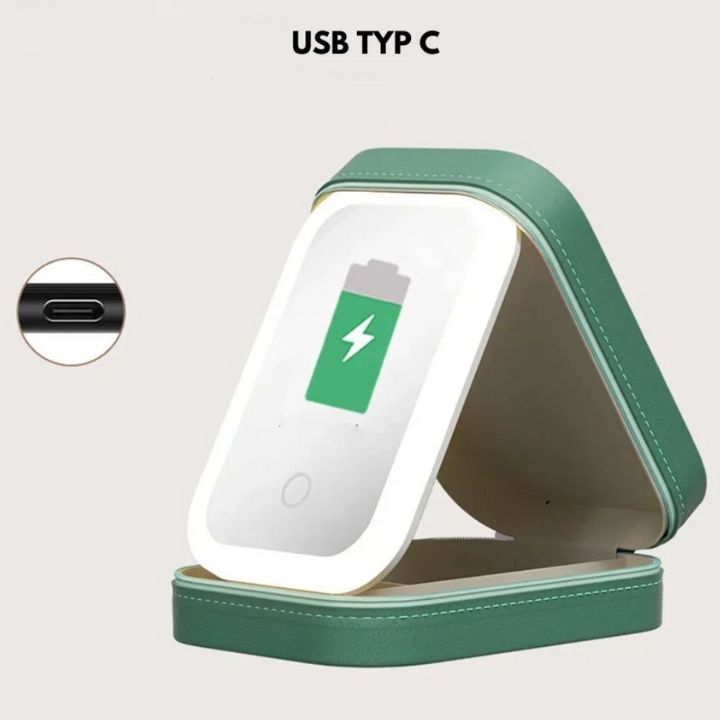 Spegel: 3 ljuslägen (varmt, kallt, neutralt), USB-uppladdningsbar