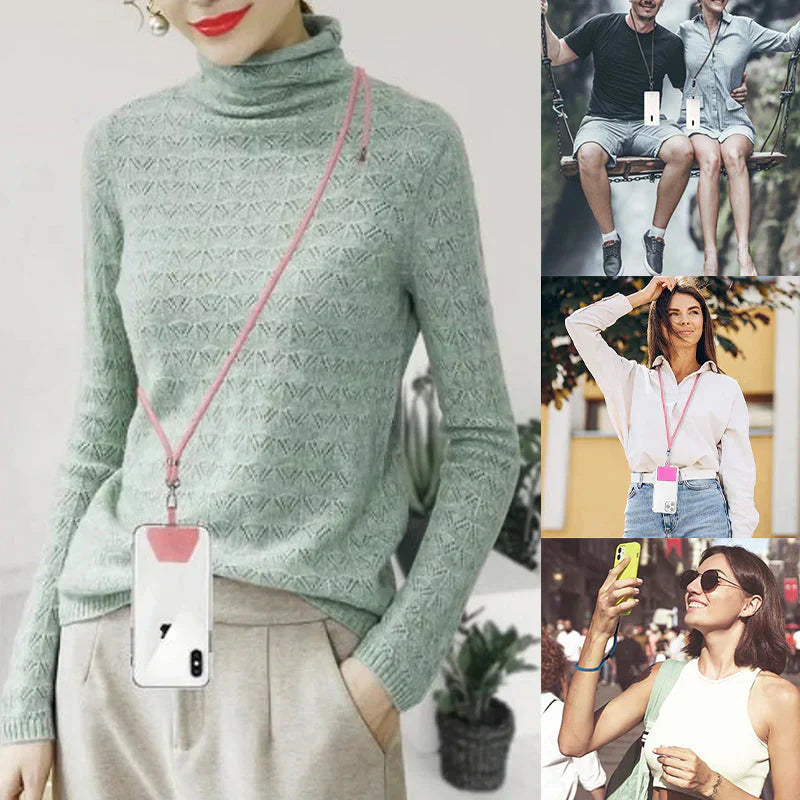 ✔️ Säker fästning: Den stabila metallspännet och slitstarka kedjan håller din telefon på plats på ett tillförlitligt sätt.