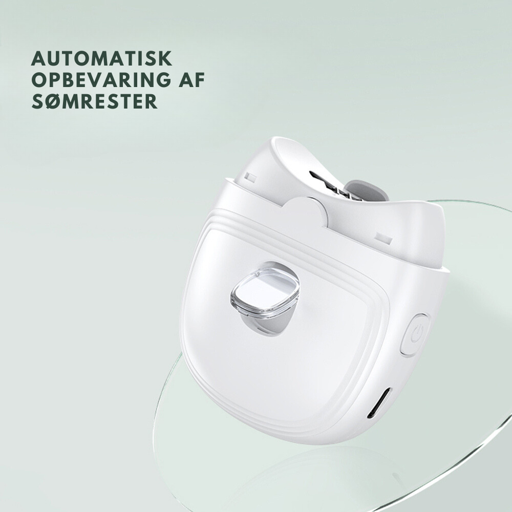 Den inbyggda uppsamlingsskålen samlar snyggt avklippta naglar och förhindrar att de sprids runt i ditt hem. Denna funktion gör nagelklippning inte bara enklare, utan också renare. Den elektriska nageltrimmern är effektiv för naglar i alla former och längder, vilket säkerställer en ren och effektiv vårdupplevelse.