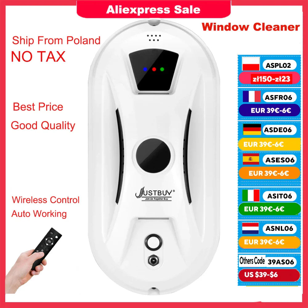 Carvallo Fönsterputsrobot | 5600Pa sugkraft | Säker & Effektiv | Med fjärrkontroll & säkerhetslina