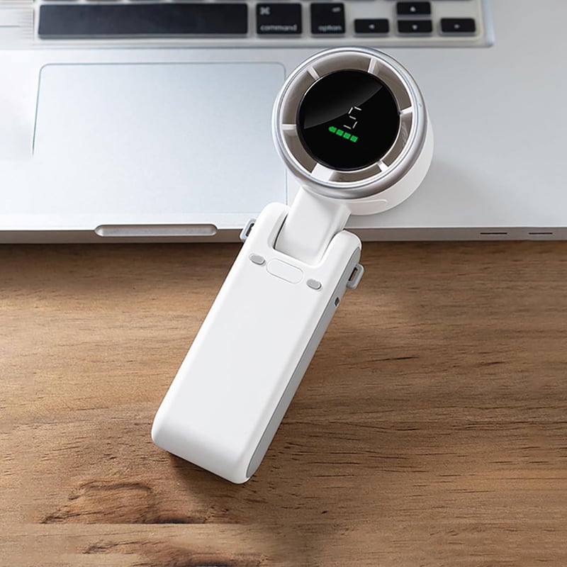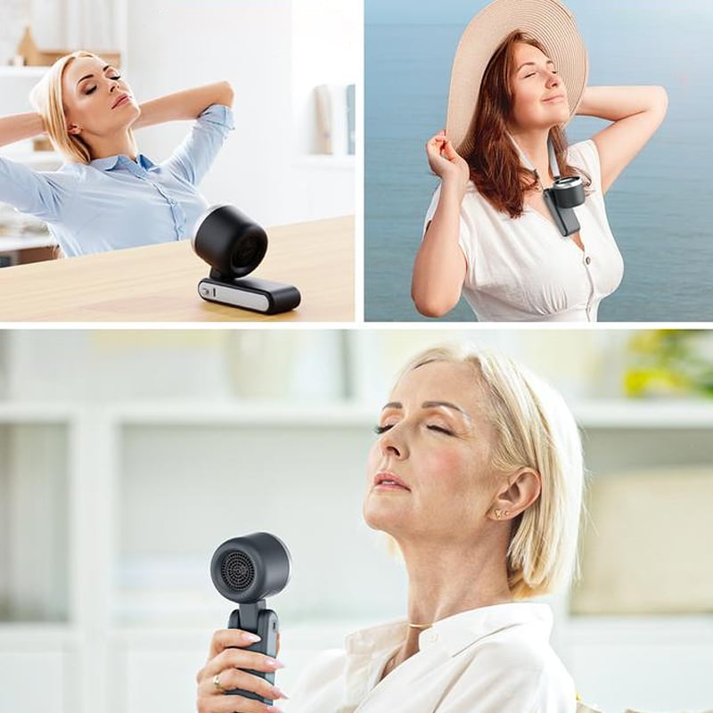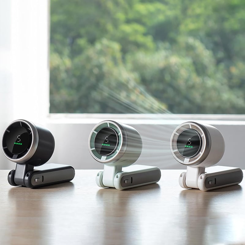 ✔️ Flexibelt användande: Kan användas som hand-, bord- eller nackfläkt – passar alla situationer.