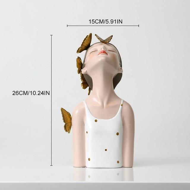 - Unik design: Skulpturen kombinerar träälvornas charm med raffinerade fjärilsakzent.