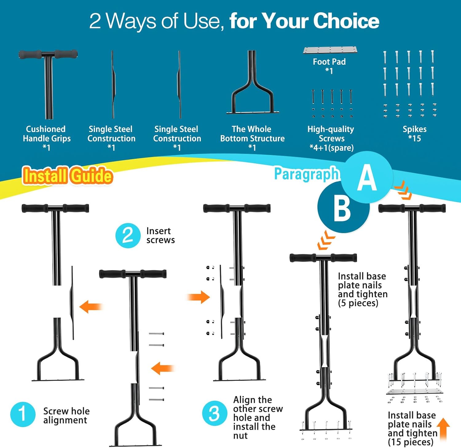 1x Gräsmatte-luftningsverktyg (inkl. handtag & basplatta)