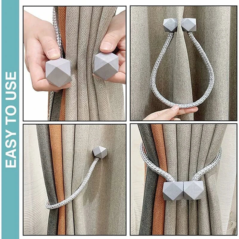 Carvallo gardinstång med magnet | 2-pack | Tjock rep-design & Stark grepp | För vardagsrum, sovrum & kök