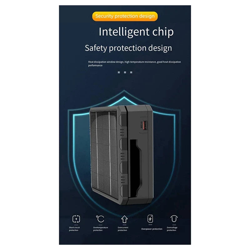 Carvallo Gear Solarladdare Utomhus | 4-faldig Batteri-Slot & LED-Lampa | Powerbank-Funktion | Svart