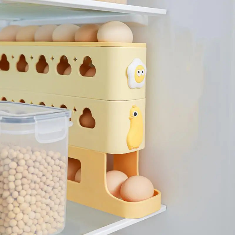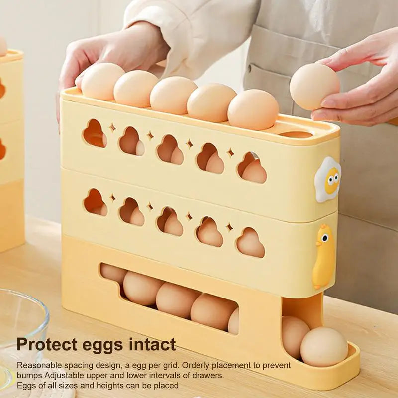 Med Carvallo äggorganisatören får du ordning och säkerhet i ditt kylskåp. Den smarta 3-lagerskonstruktionen med snedställda nivåer gör att äggen rullar automatiskt framåt – för snabb åtkomst och optimal färskhet. Perfekt för köket, kylskåpet eller skafferiet.