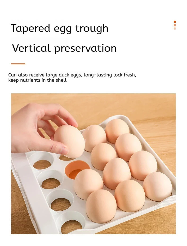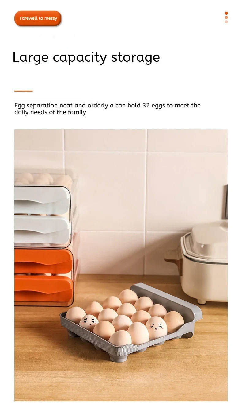📌 Praktiskt 2-lådssystem: 16 ägg per våning – separat lagrade genom spår för att undvika bräckage och stötar.