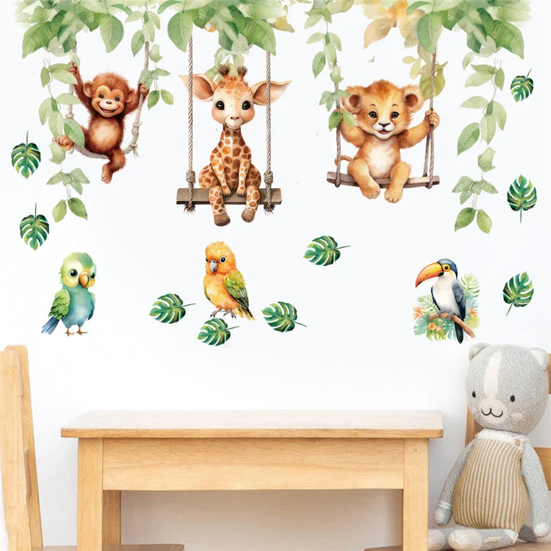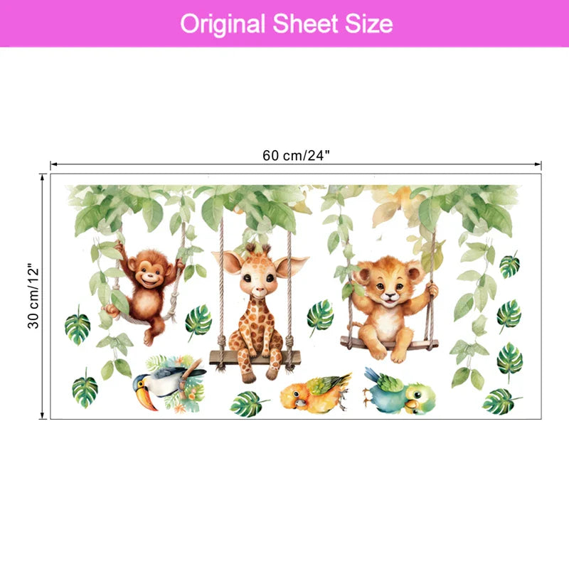 Carvallo JungleSwing väggdekal djur svänger i grenen | Rolig djungeldjurdekoration för barnrum