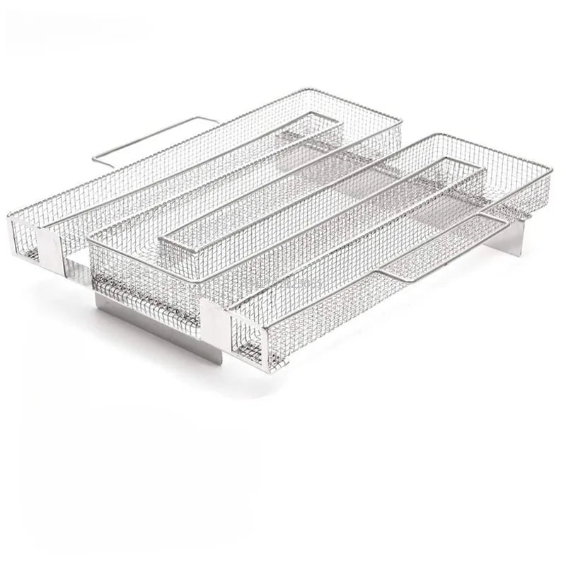 💪 Robust design i rostfritt stål – Tillverkad av högkvalitativt rostfritt ståltråd nät – hållbar, rostfri och lätt att rengöra. Den kompakta konstruktionen sparar plats i grillen och säkerställer en jämn rökfördelning.