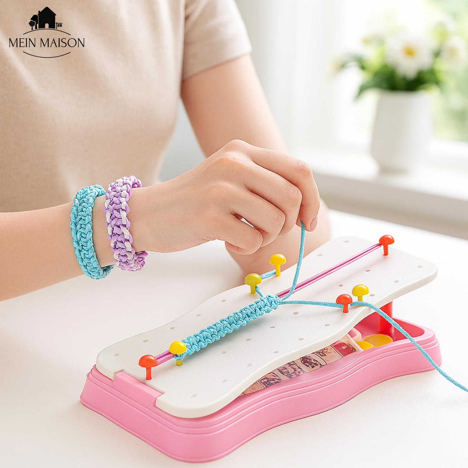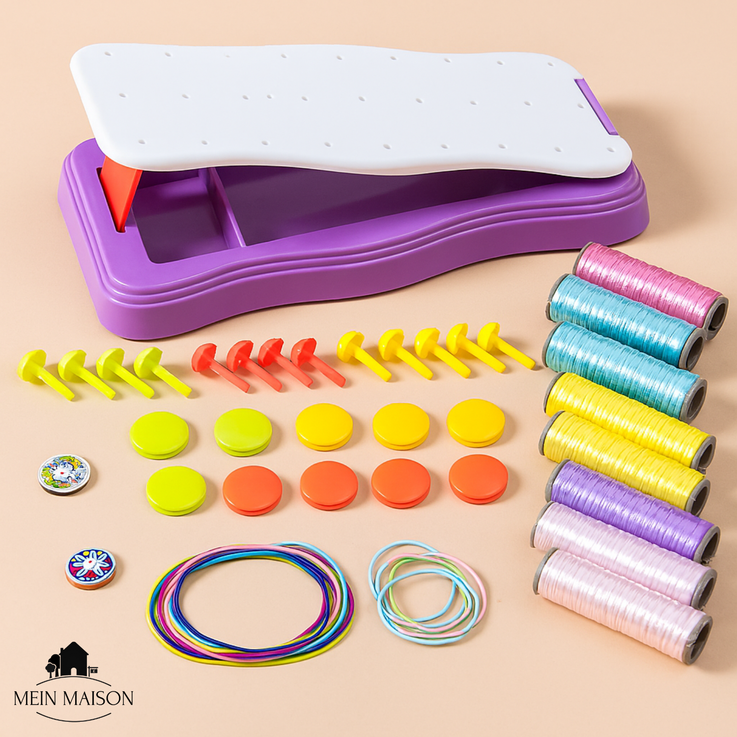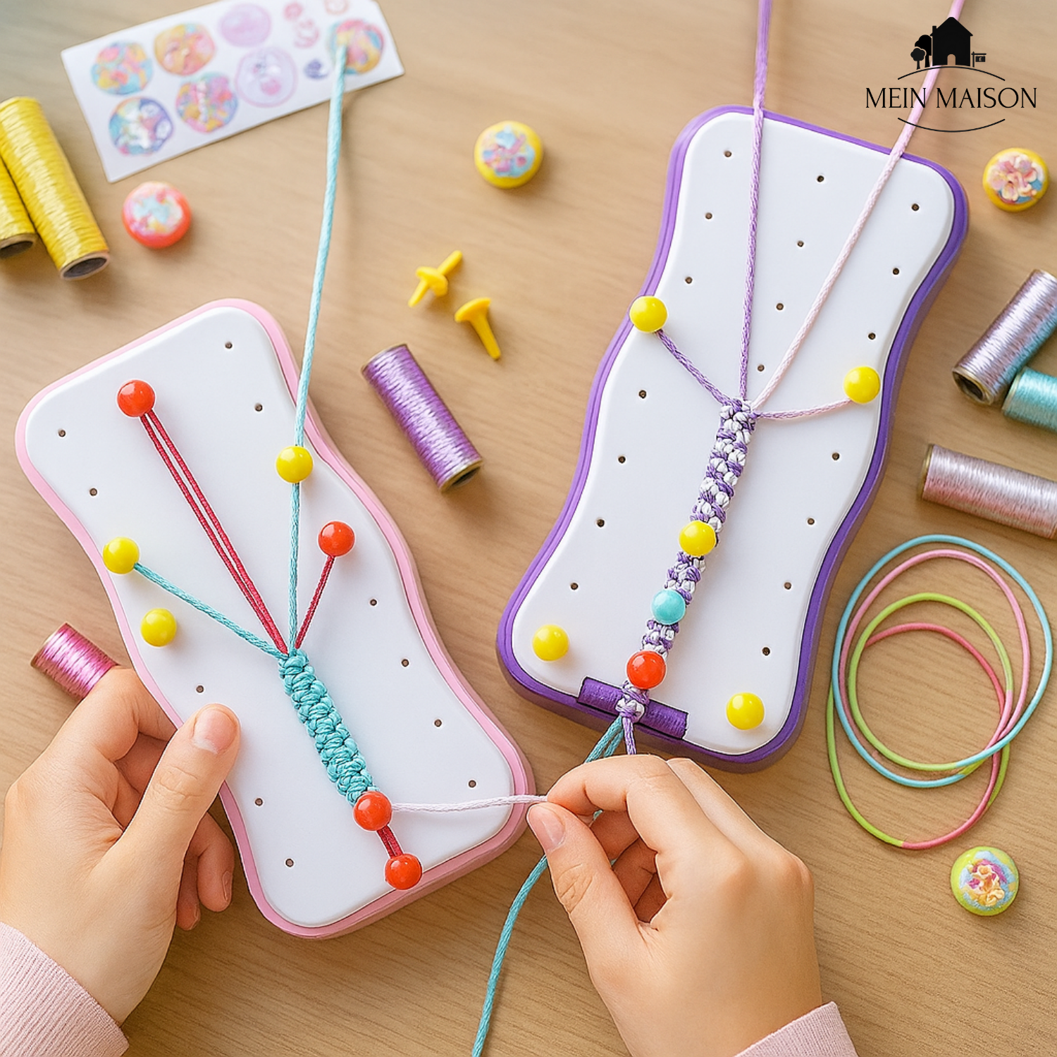 Med detta DIY flätset kan barn skapa egna armband, nyckelringar eller vänskapsgåvor – färgglatt, kreativt och väldigt enkelt! Under tiden tränar de sin fingerfärdighet och spenderar värdefull pysseltid med familjen.