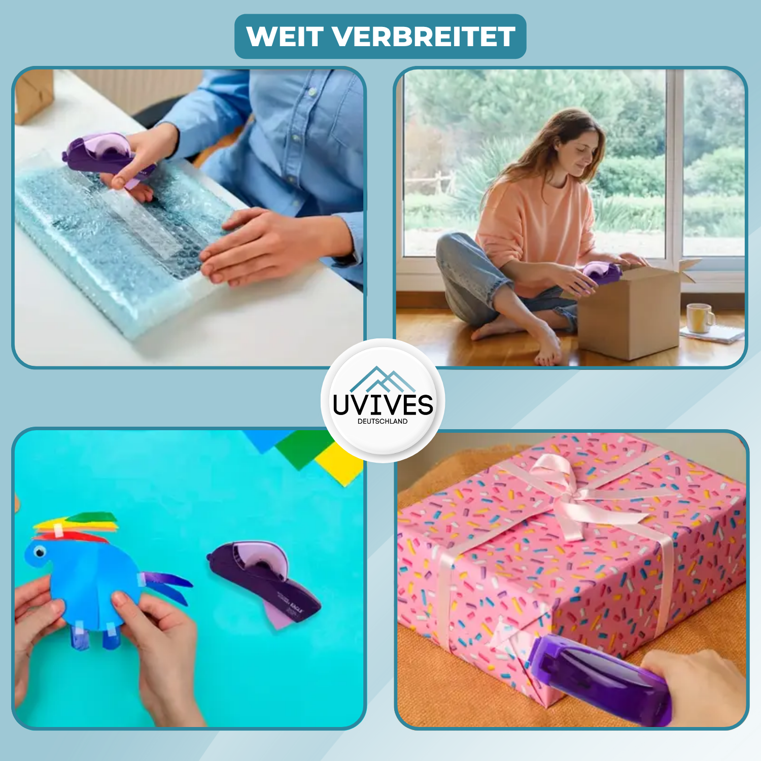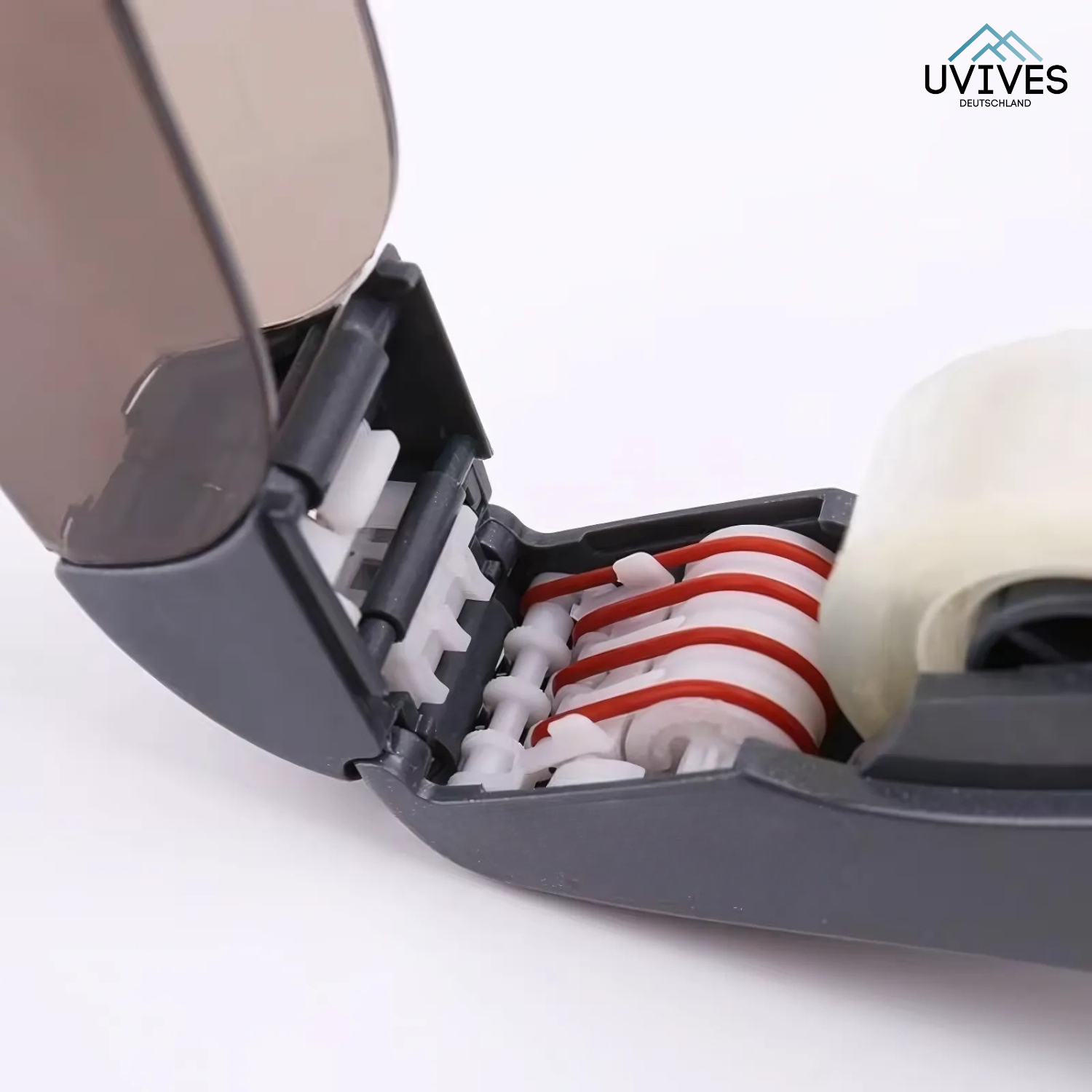 Med Carvallo blir limmande en enkelhandsgrej! Denna smarta tejphållare ger automatiskt den perfekta längden, klipper säkert och rent – och fungerar helt utan el eller batterier.